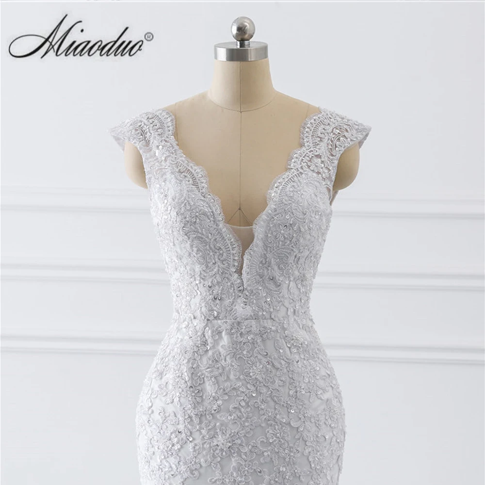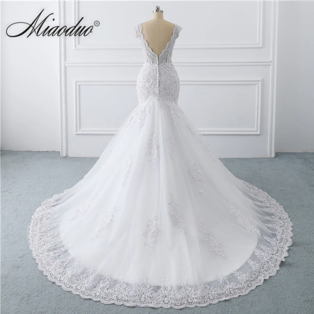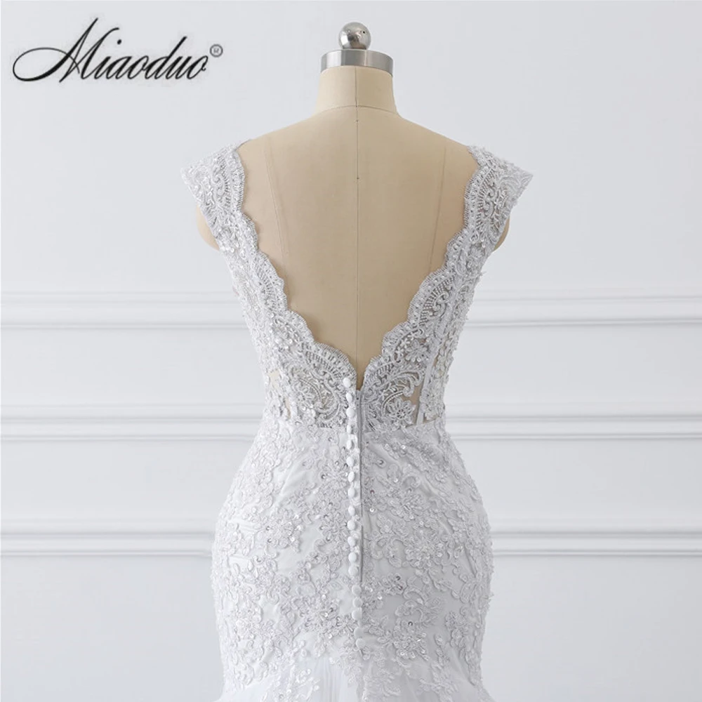 Miaoduo Wedding Dress Mermaid 2020 Backless Vestidos De Noiva for Women Pearls V Neck White Lace Robe De Mariée suknia ślubna