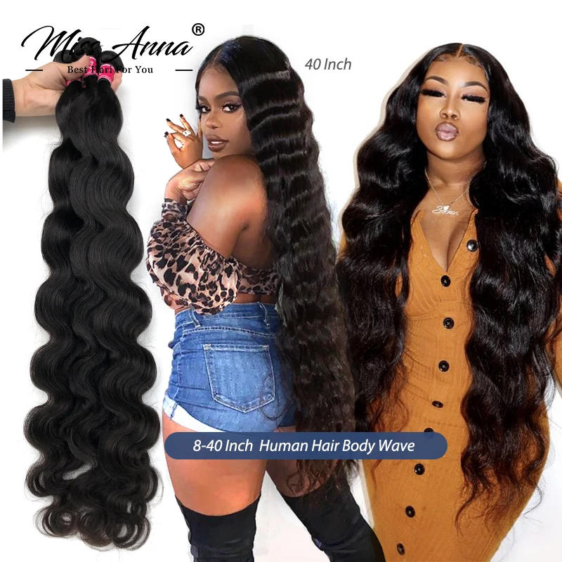 Missanna Body Wave Bundles 30 32 34 36 38 40 Inch 100% Human Hair Brazilian Hair Weave Bundles Remy Hair 1/3/4 Pcs