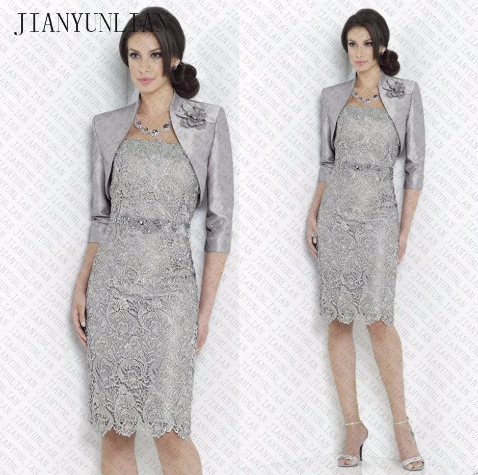 Mother of the Bride Dresses 2020 Knee Length Mother Dress 3/4 Sleeve Lace Beads Jacket Evening Gown Vestido Madre Novia Prom