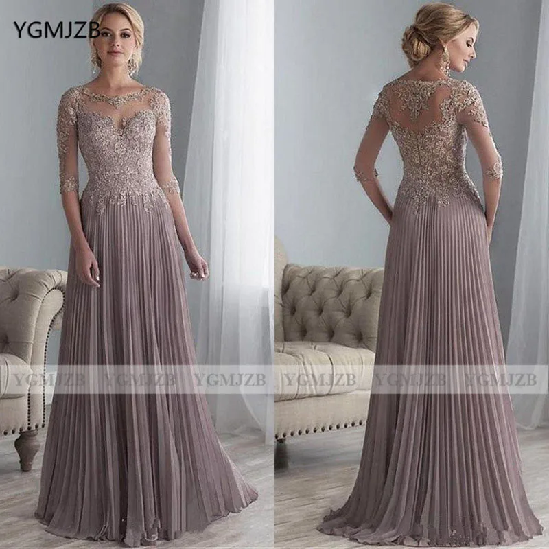 Mother of The Bride Dresses A-Line Half Sleeve Mother Dress For Wedding Party Appliques Lace Chiffon Mom Dress 2020 Hot Sale