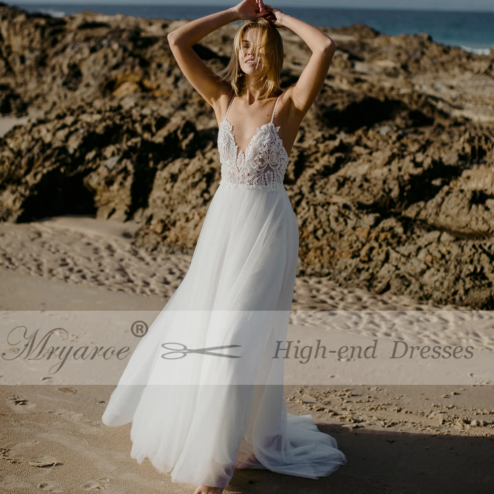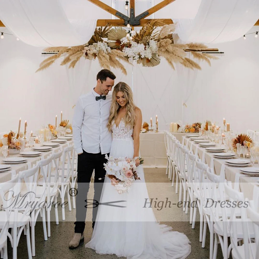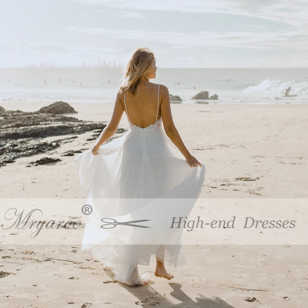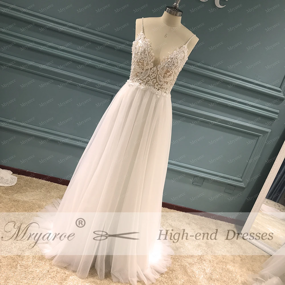 Mryarce Exclusive lace Beading Flowing Tulle A Line Wedding Dress Open Back Summer Beach Elegant Bridal Gowns