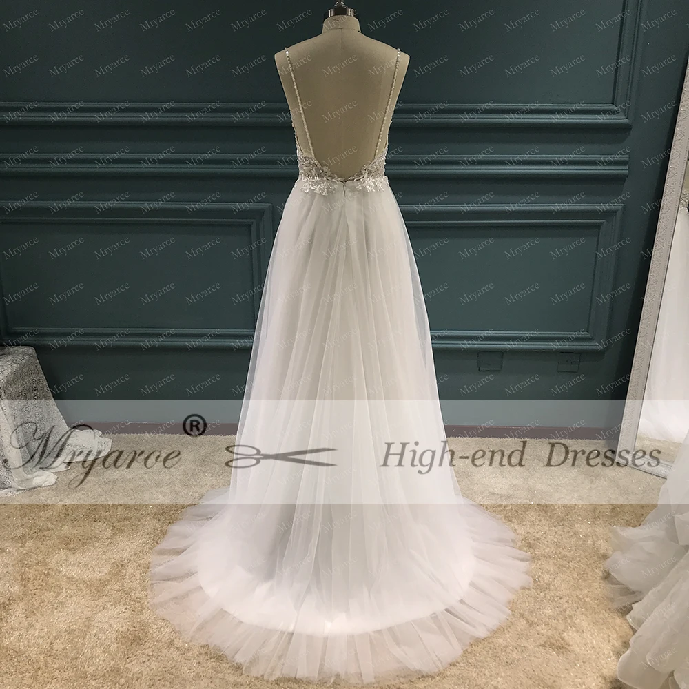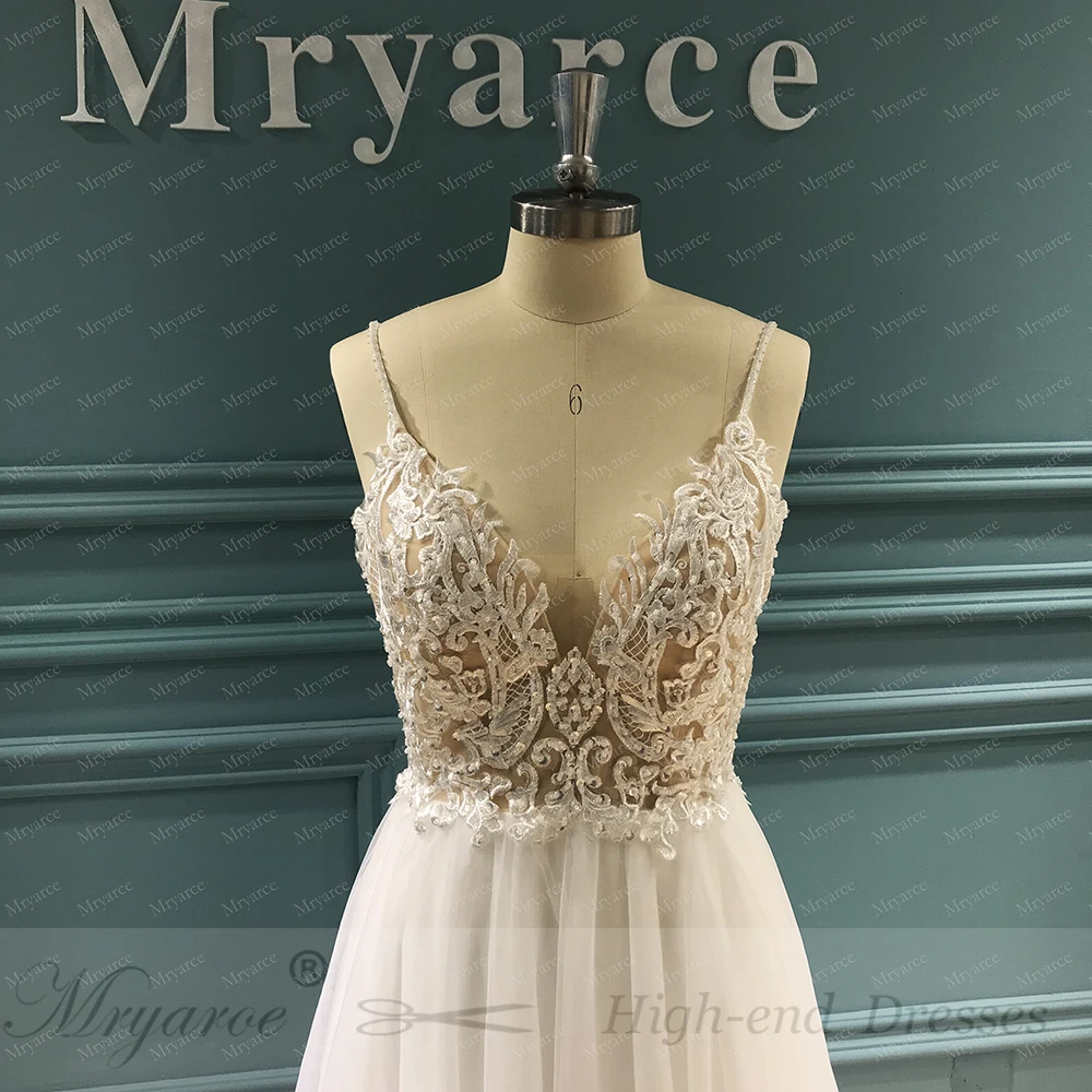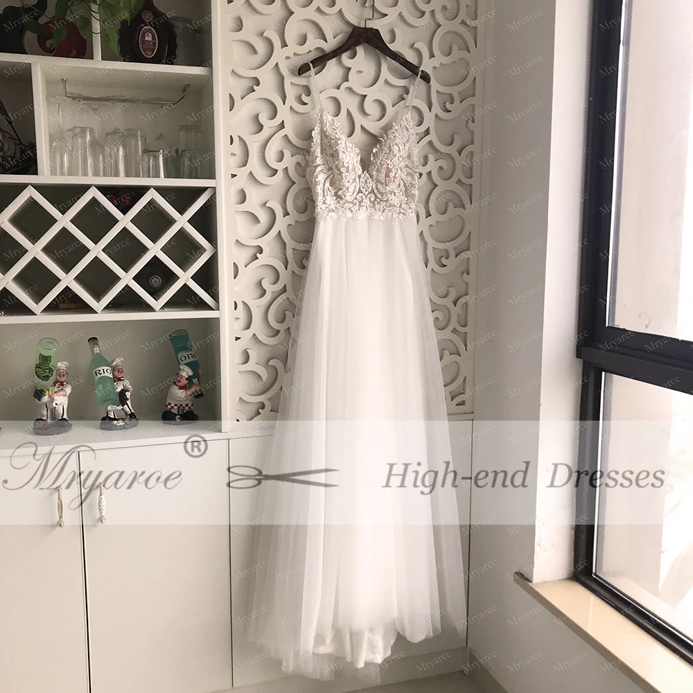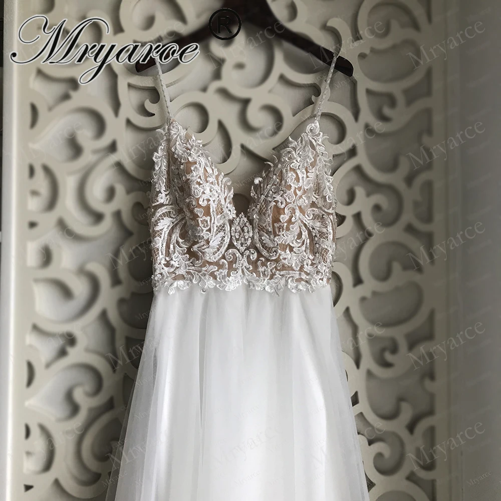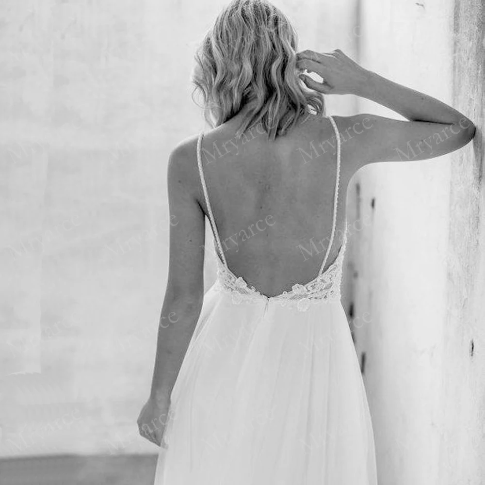 Mryarce Exclusive lace Beading Flowing Tulle A Line Wedding Dress Open Back Summer Beach Elegant Bridal Gowns