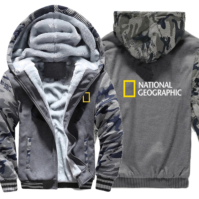 National Geographic Channel Hoodies Winter Camouflage Sleeve Jacket Men Fleece National Geographic Sweatshirts
