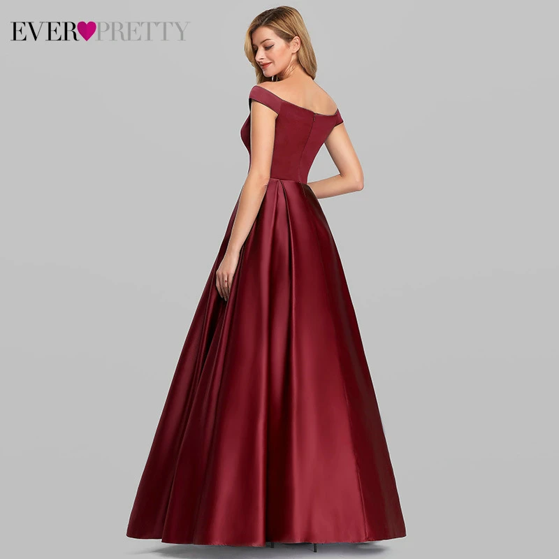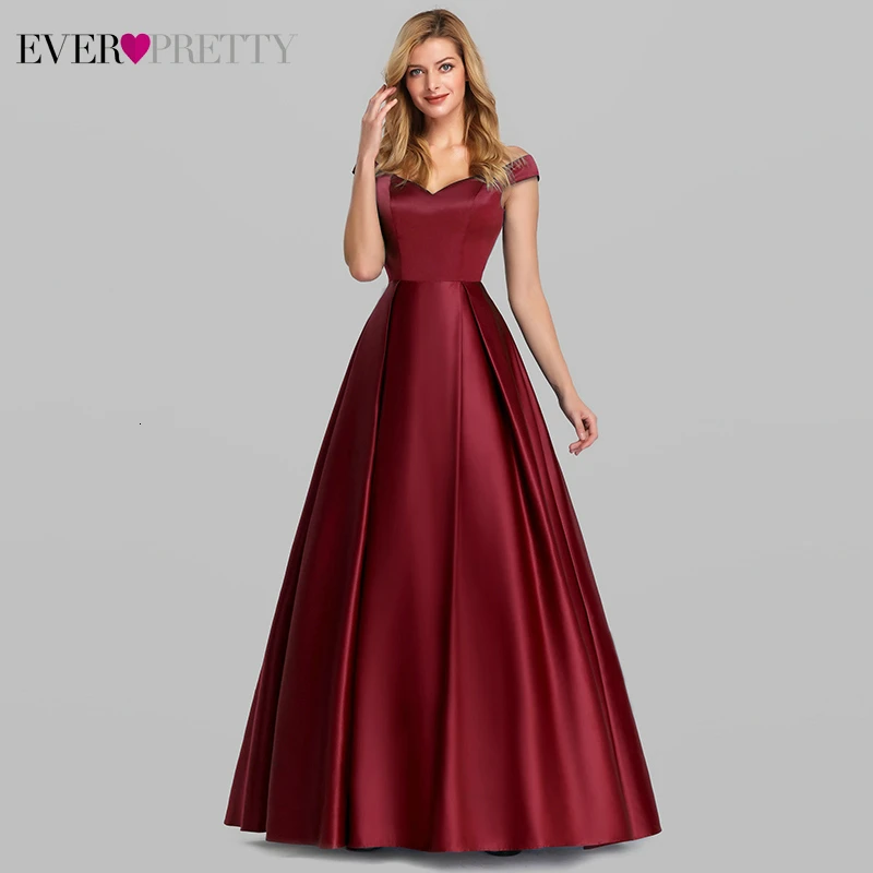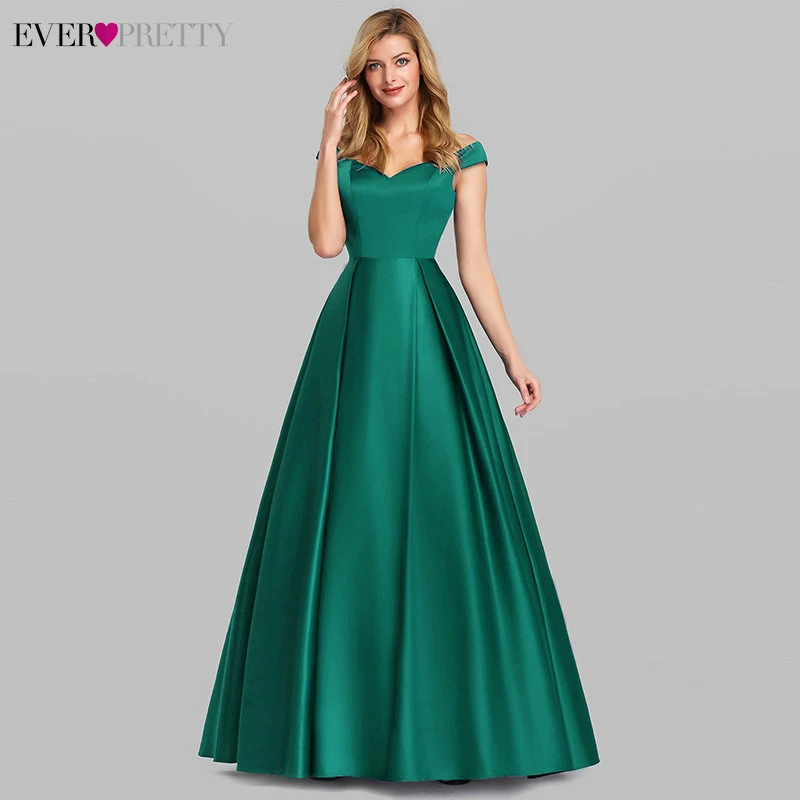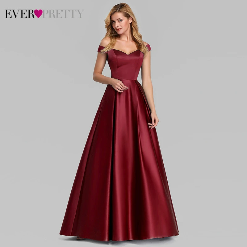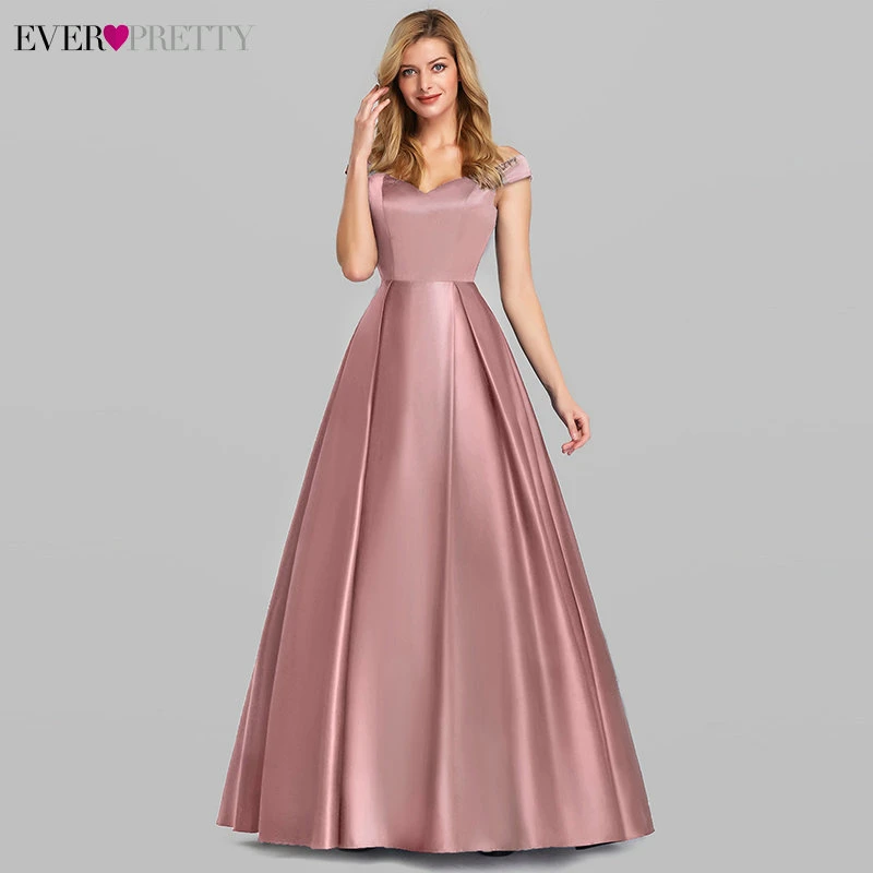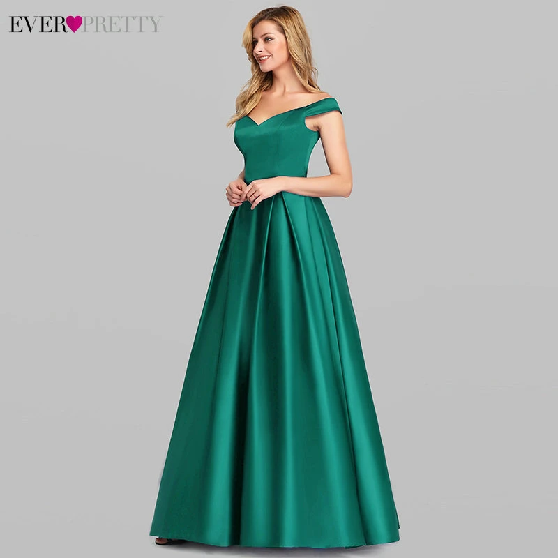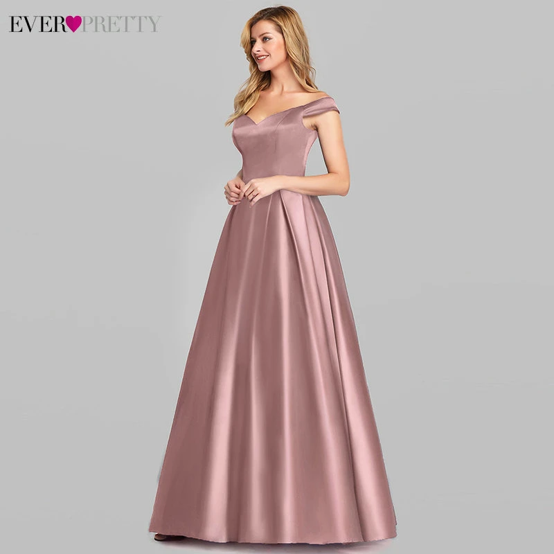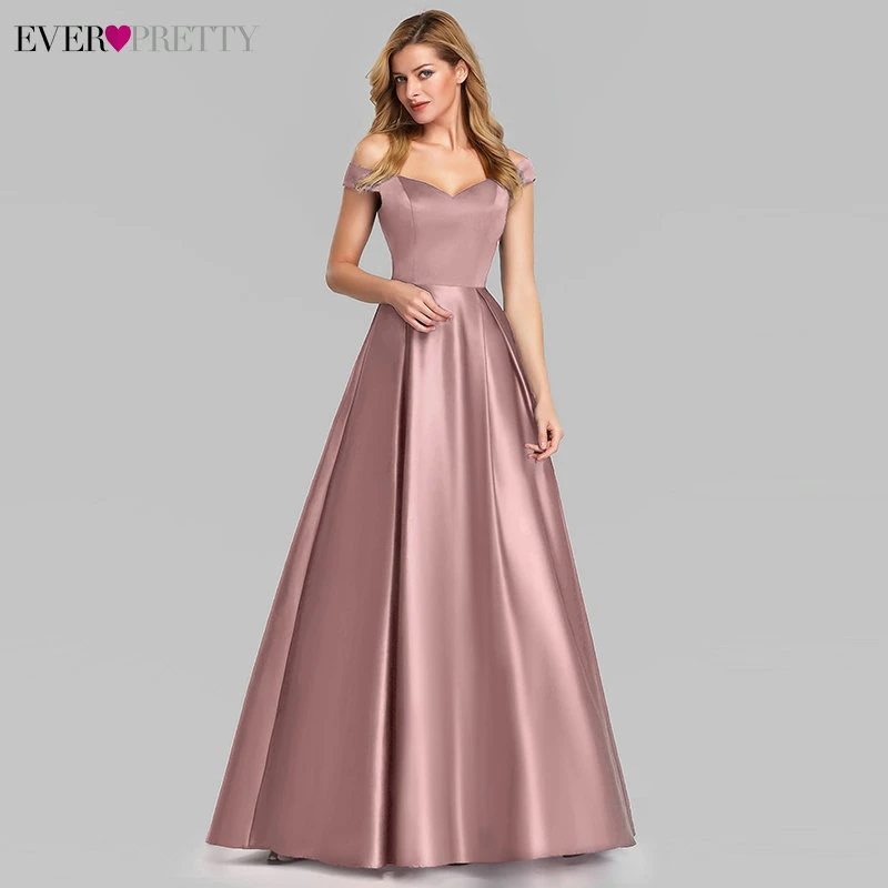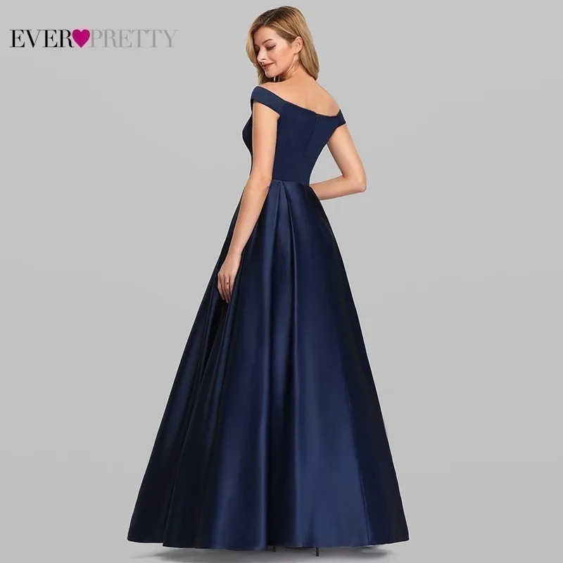 Navy Blue Elegant Women Long Prom Dresses 2020 Ever Pretty Satin A-LIne V-Neck Off The Shoulder Vintage Formal Party Dresses