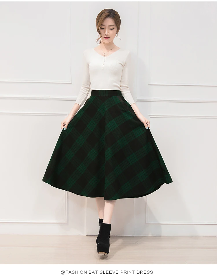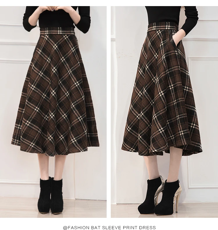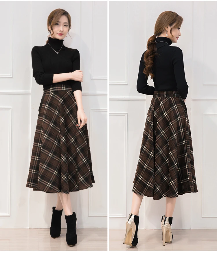 Neophil England Style Red Plaid High Waist Midi Skirts Woolen Plus Size 3XL A Line Pleated 2020 Winter Women Tartan Skirts S1735