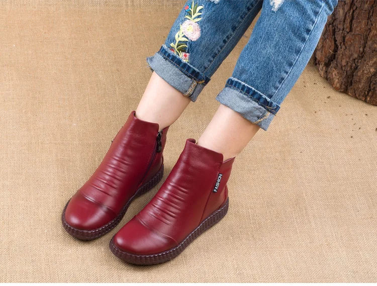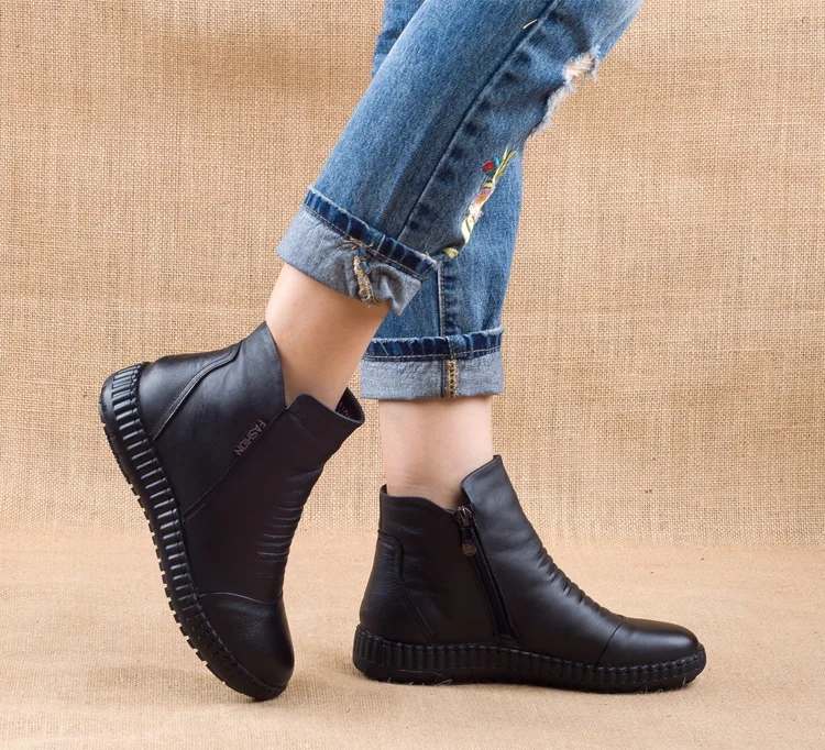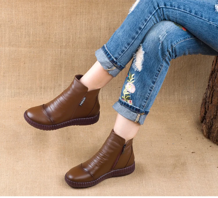 New 2020 Autumn Fashion Women Genuine Leather Boots Handmade Vintage Flat Ankle Botines Shoes Woman Winter botas