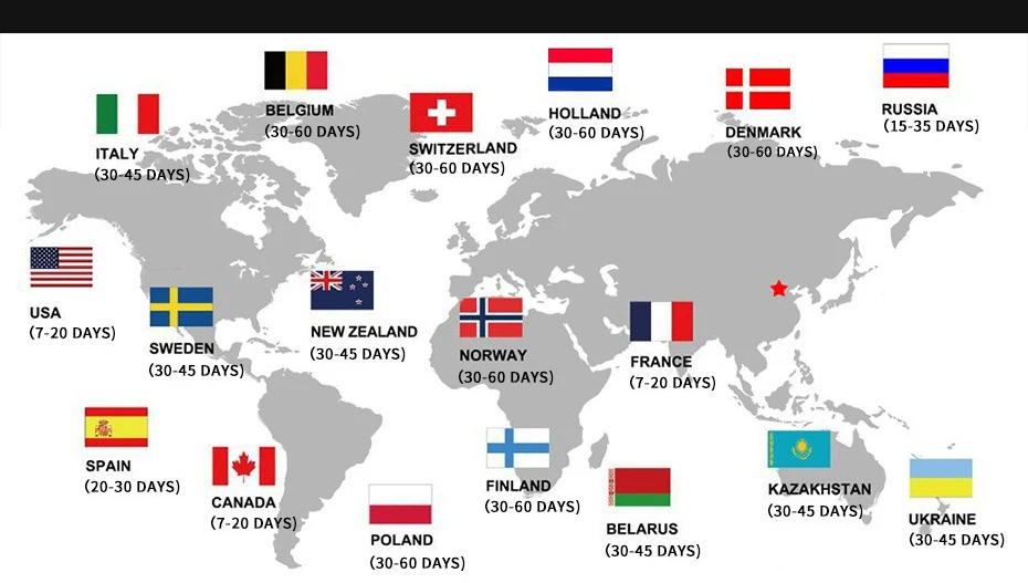 Asia 10-20 Business days