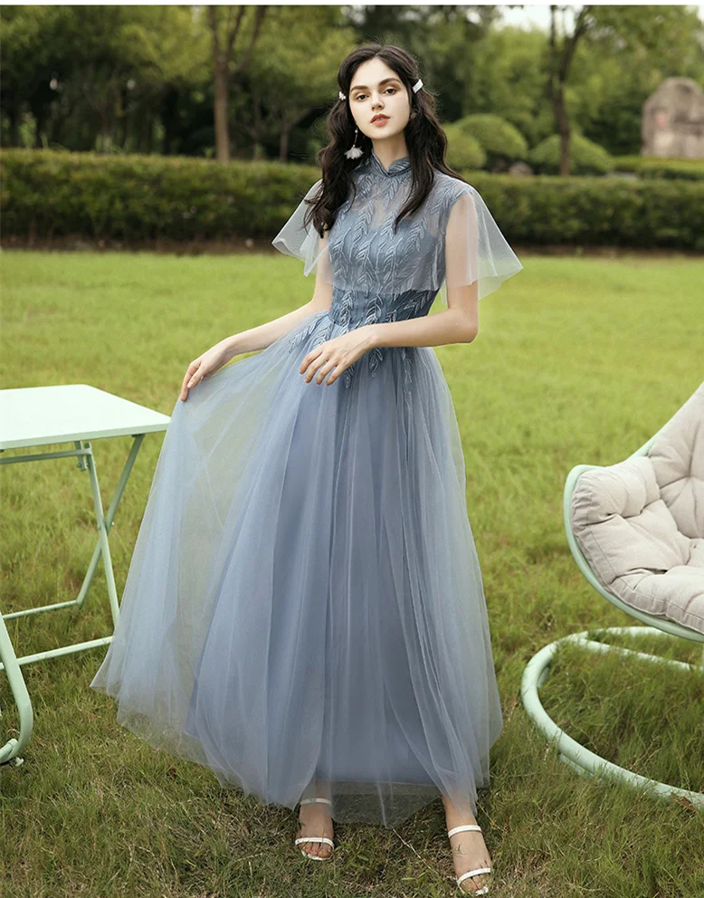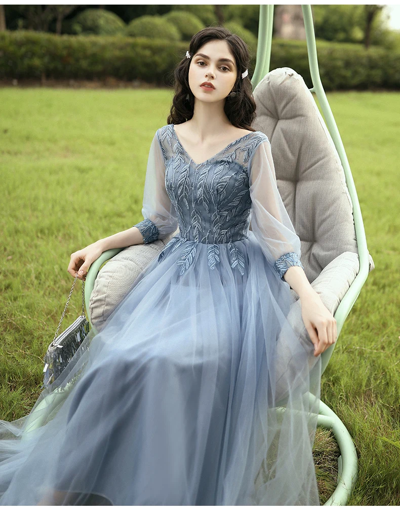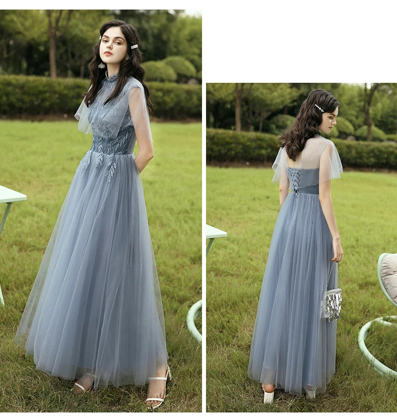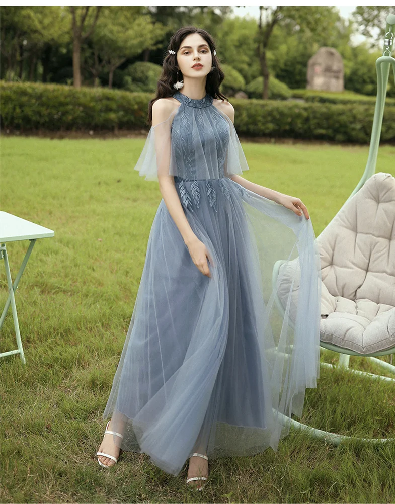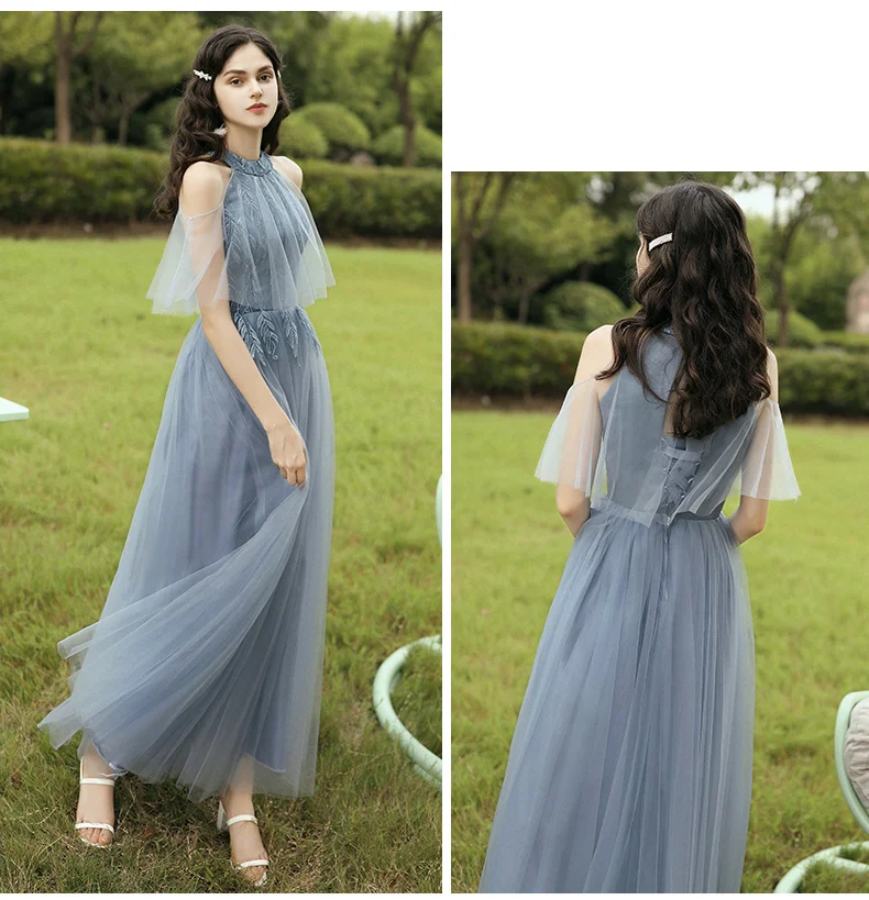 New Dusty Blue Mix and Match Bridesmaid Dresses Appliques Flowers Fall Blush Bride Prom Party Gown Cheap Robe De Soriee 2020