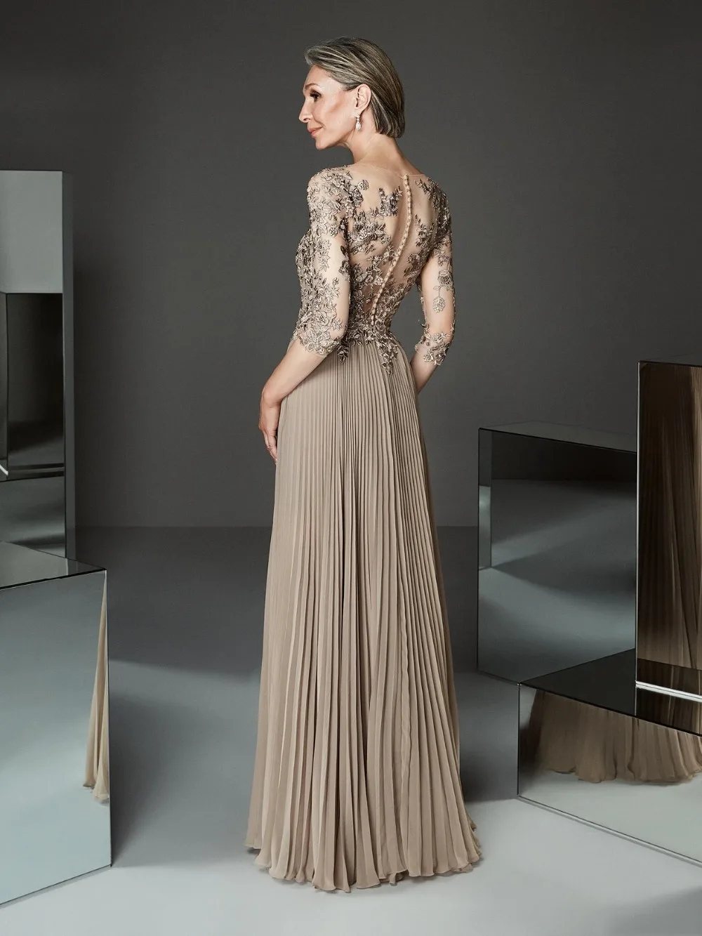 New Elegant Champagne Gold Furnished Evening Clothes Half Shell Long Prom Gwon 2020 Wedding Party Guest Dress Femme Robe De