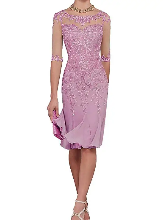 New Half Sleeve Chiffon Mother of The Bride Dresses 2020 Knee Length Mother Formal Dress Party Dinner Prom Gowns robe de soriee