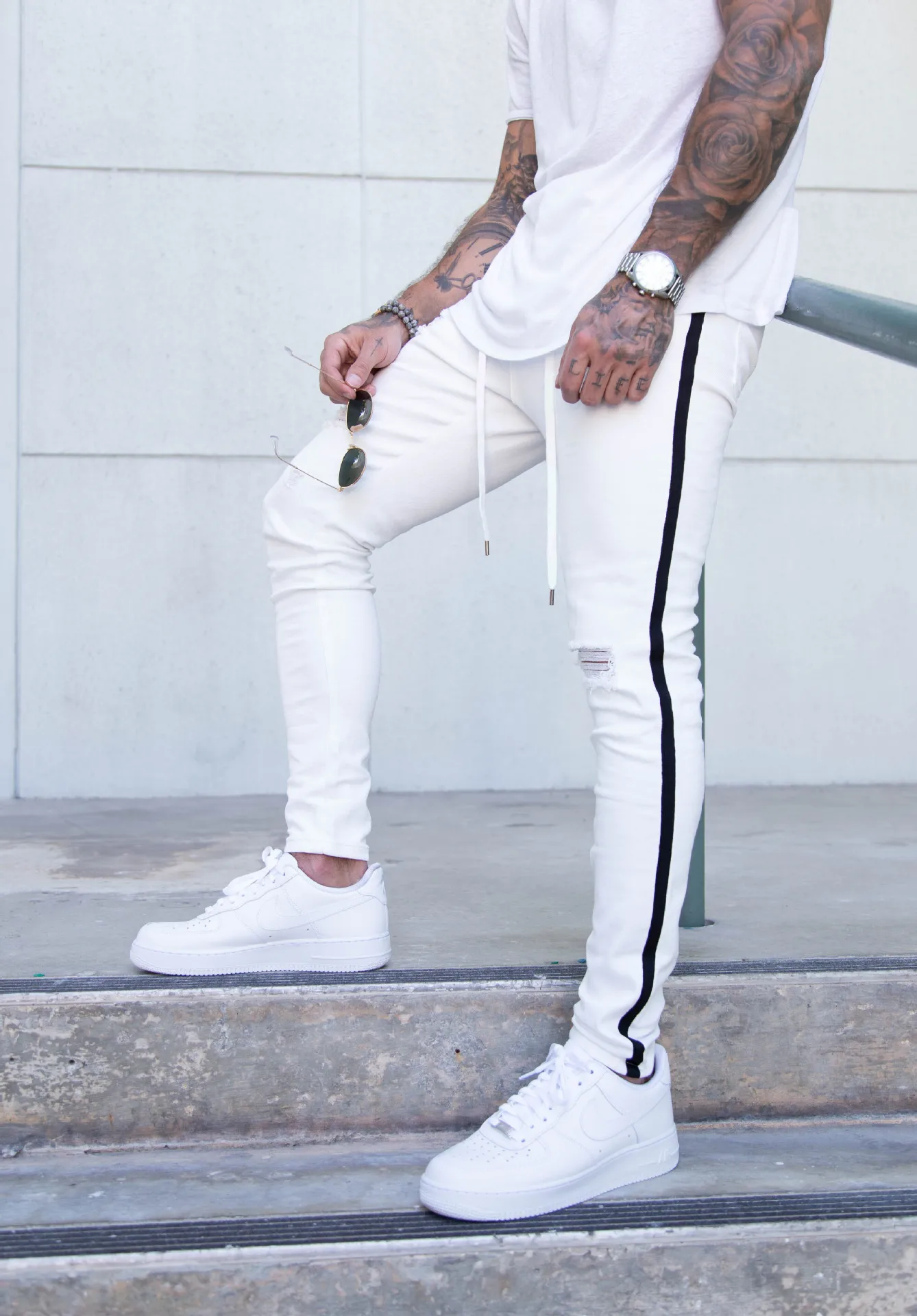 NEW Men Skinny Jeans Biker Destroyed Frayed Fit Denim Ripped Side Stripe Pencil Pants Hip Hop Streetwear Jeans S-4XL