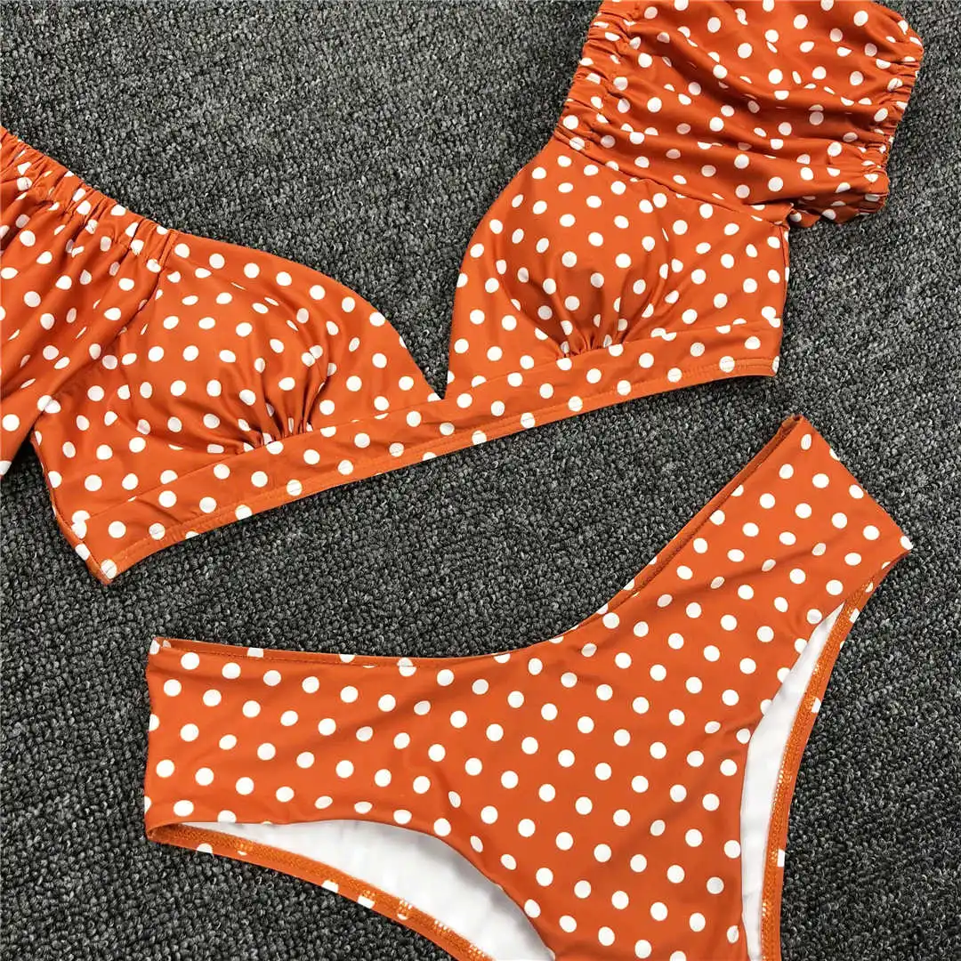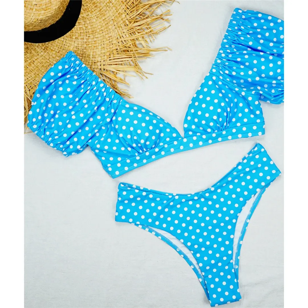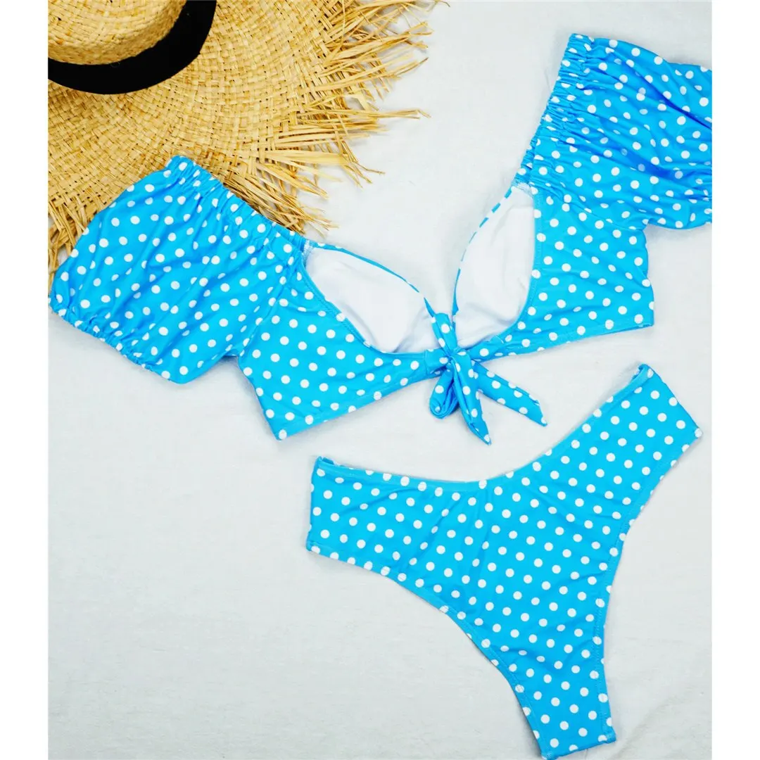 NEW Polka Dots V Neck Mid Waist Bikini 2020 Female Swimsuit Women Swimwear Two-pieces Bikini set Bather Bathing Suit Swim V1909