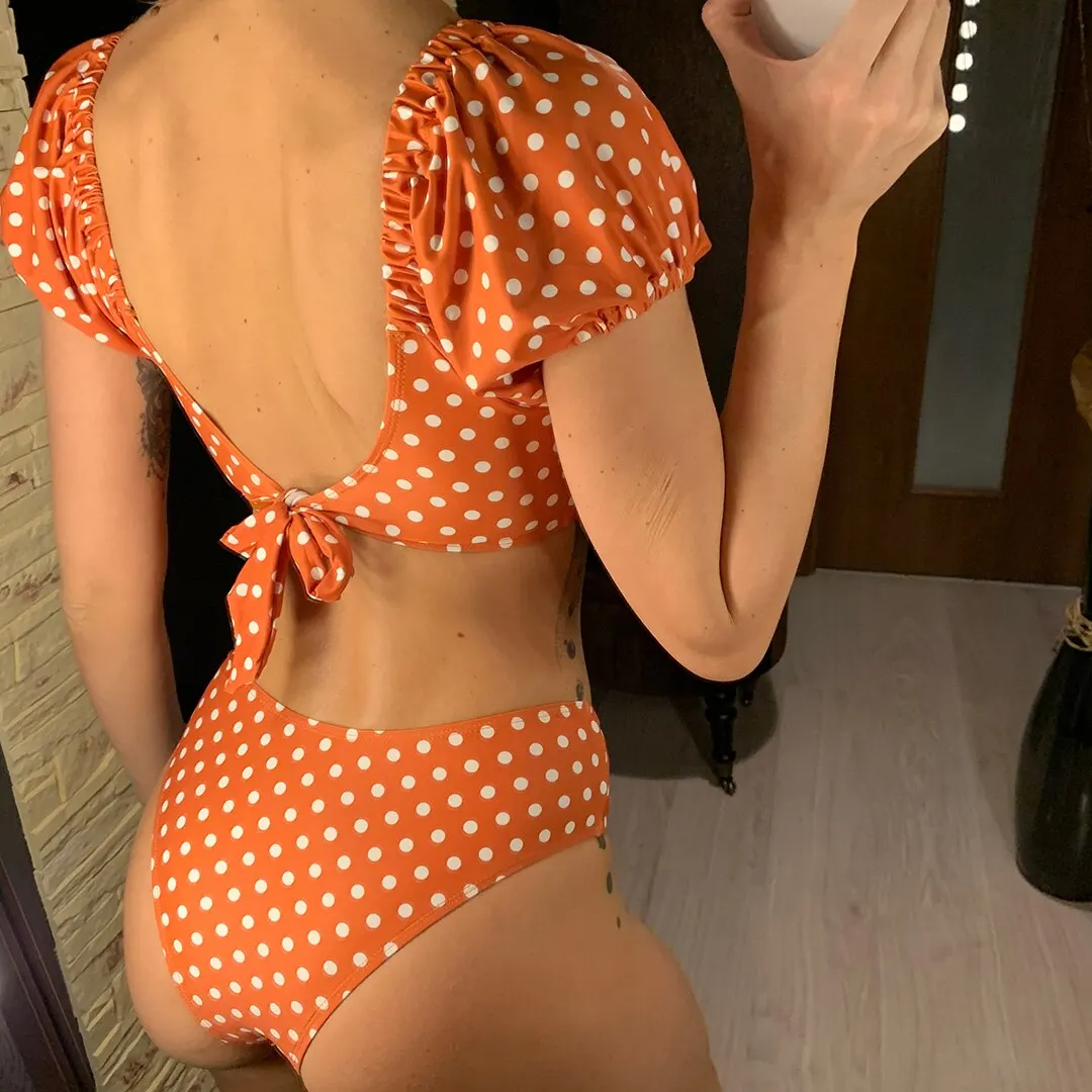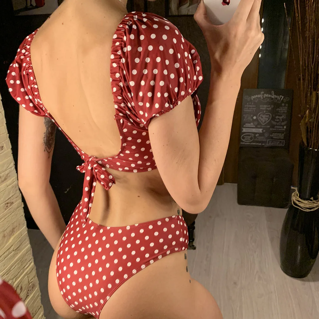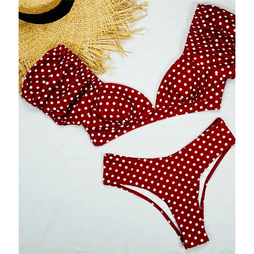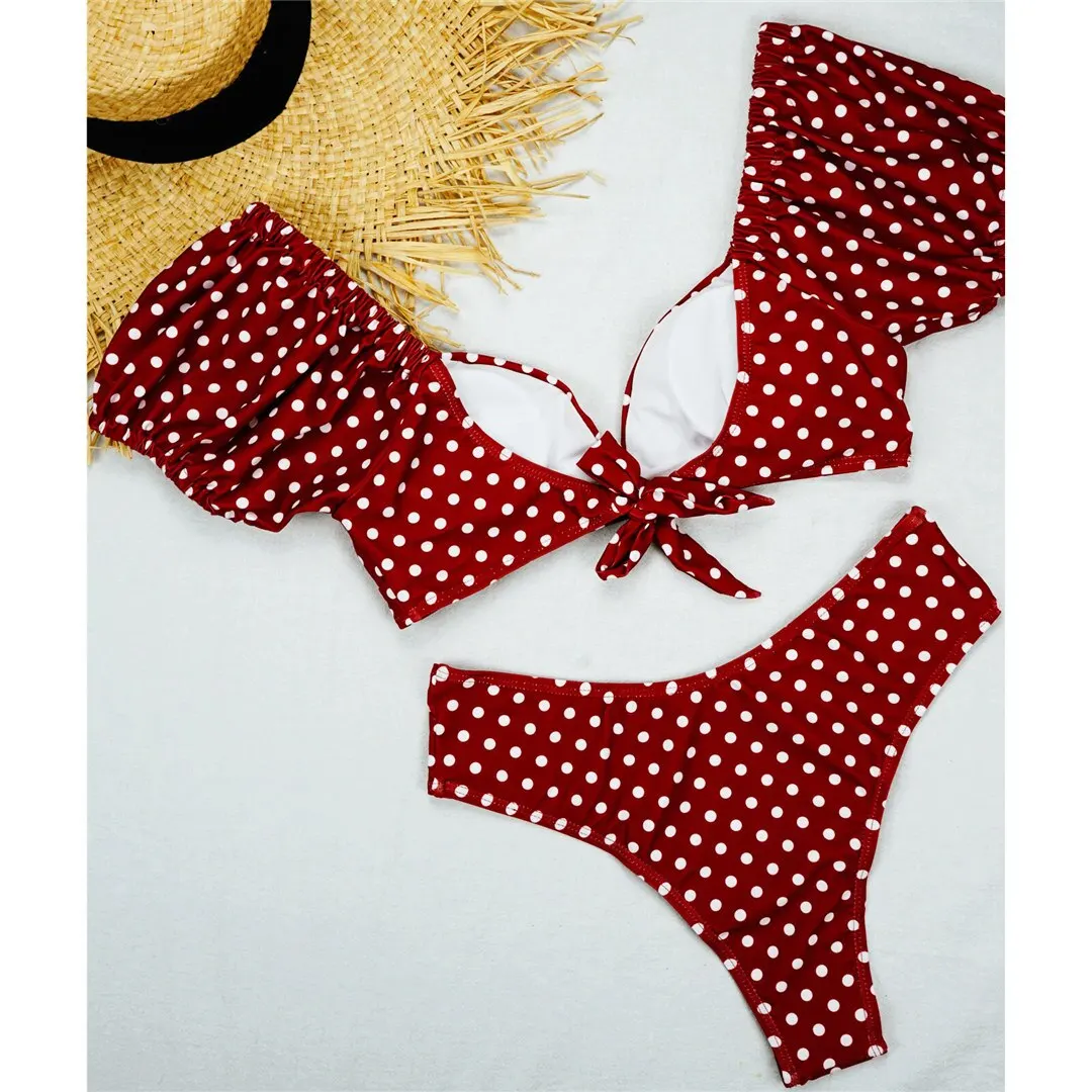 NEW Polka Dots V Neck Mid Waist Bikini 2020 Female Swimsuit Women Swimwear Two-pieces Bikini set Bather Bathing Suit Swim V1909