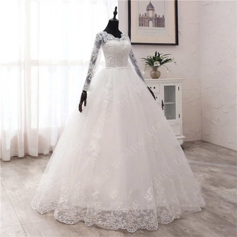 New Spring Lace Appliques Wedding Dresses Long Sleeve Vestidos De Novia 2021 White V-Neck Princess Bride Wedding Gowns Plus Size