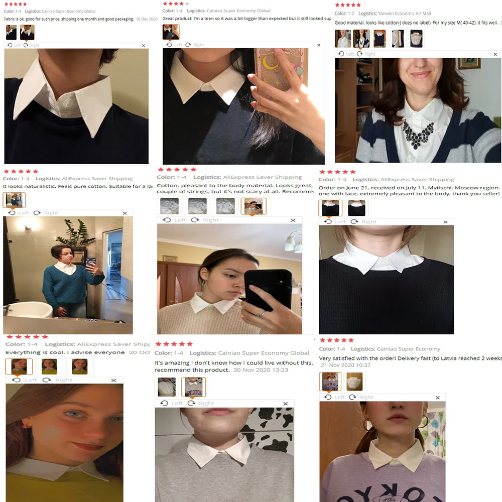 New Women Cotton Lace Fake Collar Blouse Vintage Detachable Shirt Collar False Collar Lapel Blouse Top Women Clothes Accessories Brand New High Quality Color: White/Black shirt fake collar Neck line: 39 cm Package Included: 1pc fake collar Note: Please allow 1-2cm deviations due to manual measurement. Thanks for your understanding…