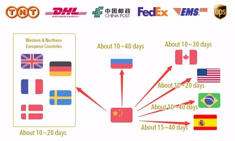 Packages from our warehouse in China will be shipped by ePacket or EMS depending on the weight and size of the product. Packages shipped from our US warehouse are shipped through USPS.
