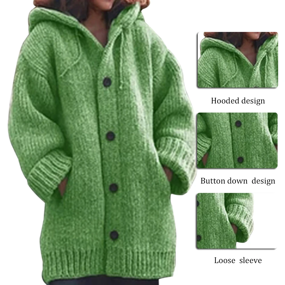 New Women’s Cardigans Sweater Coat Warm Sweater Coats Loose Wool Knitted Coat Autumn Winter Women Long Cardigan Oversized Hooded