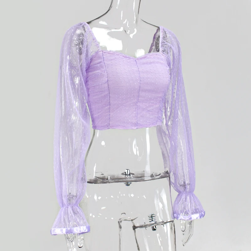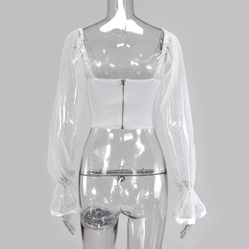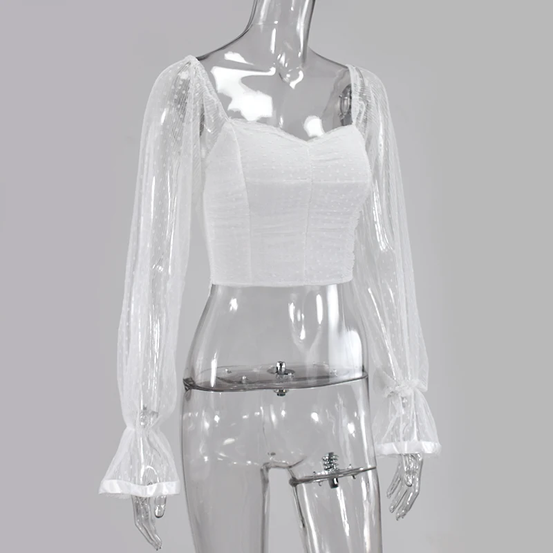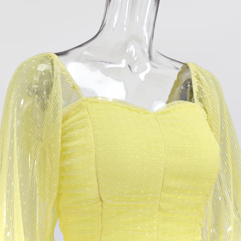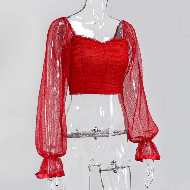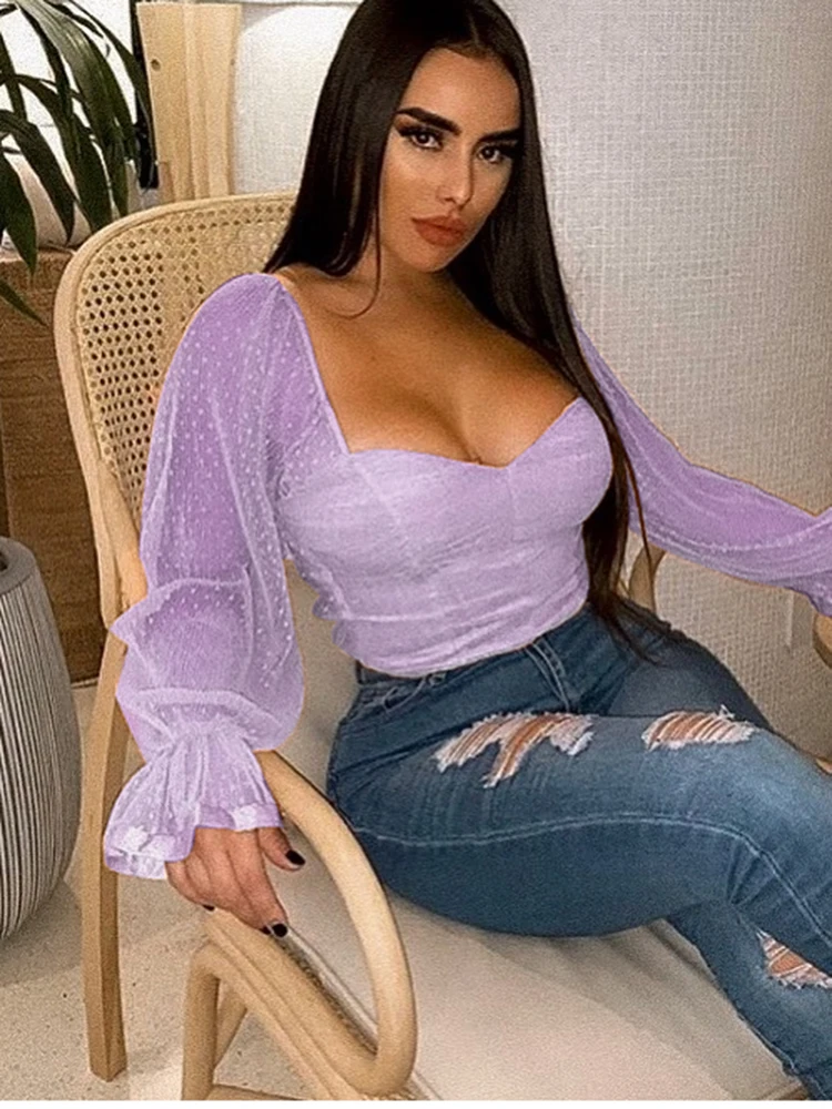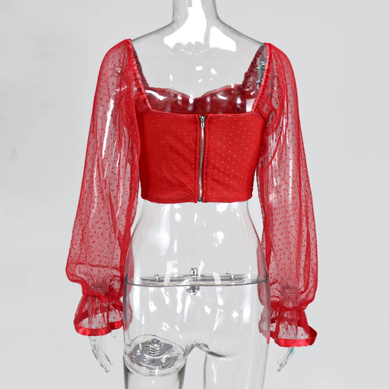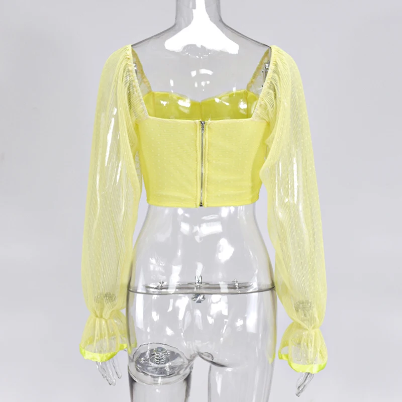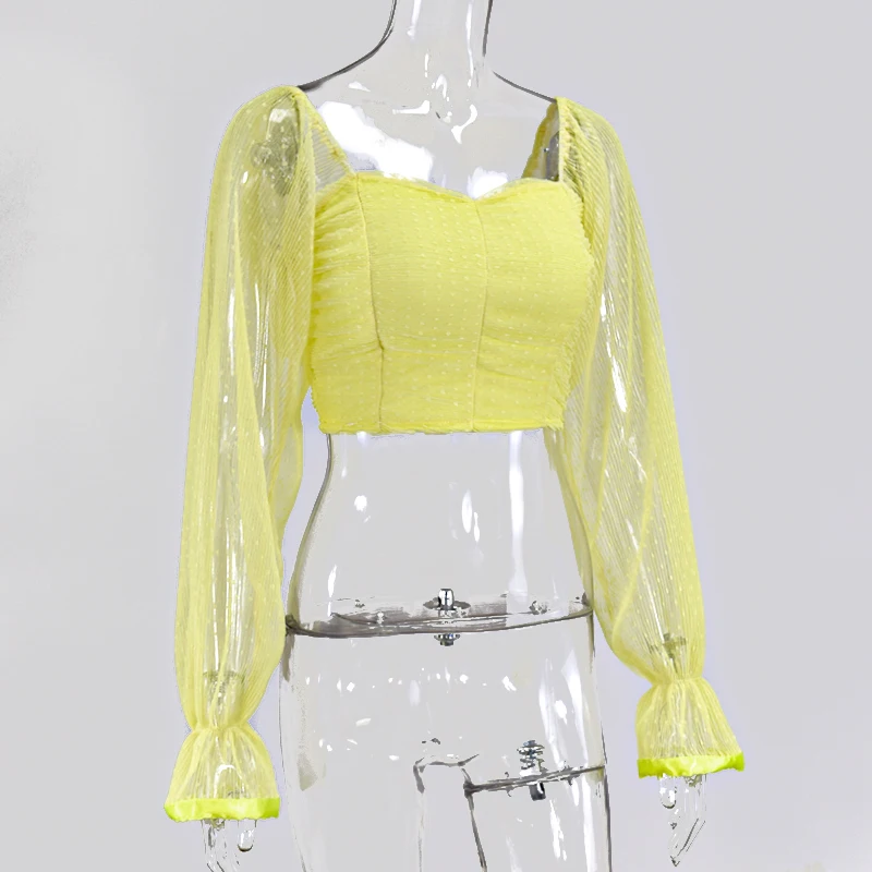 NewAsia Garden Sweet Pink Blouse Women Puff Sleeve Ruffles Mesh Polka Dot Tops Vintage Big Square Collar Solid Color Blusas 2020