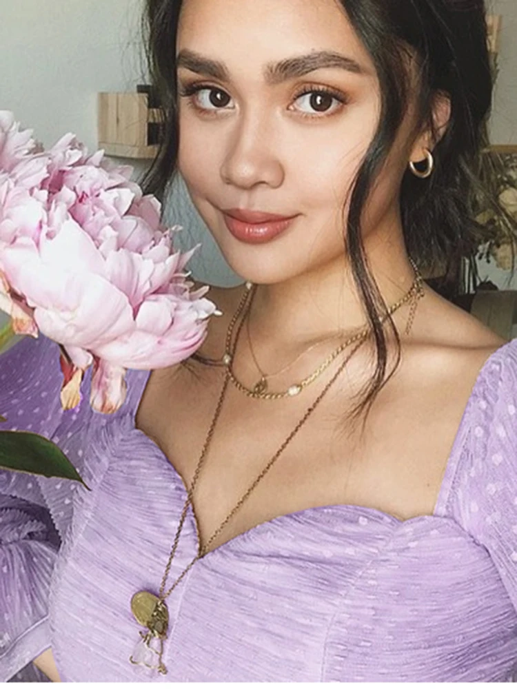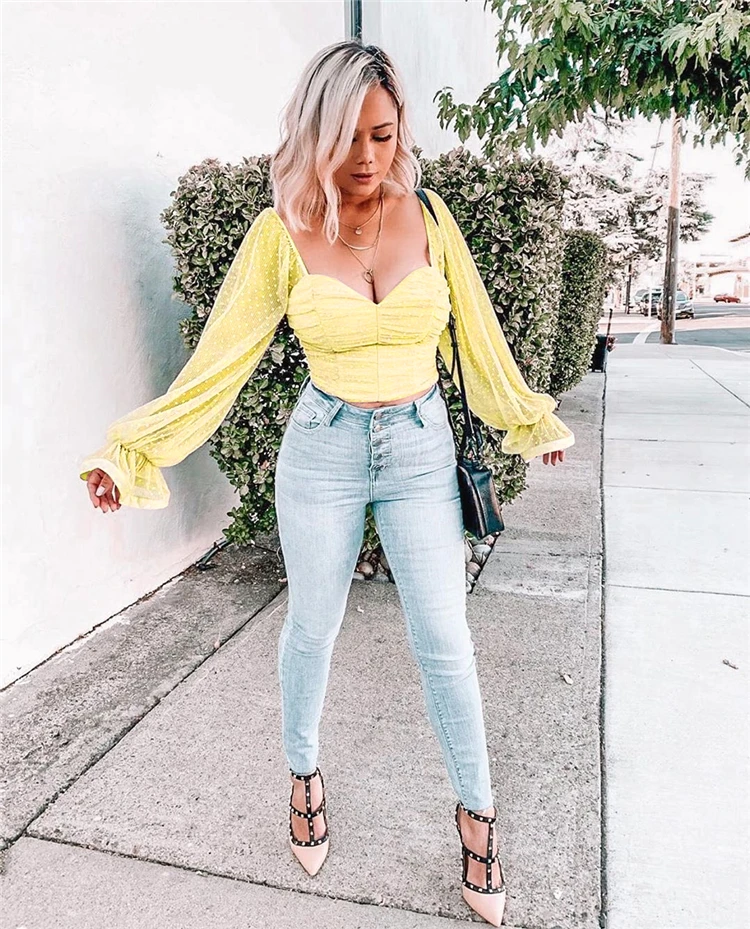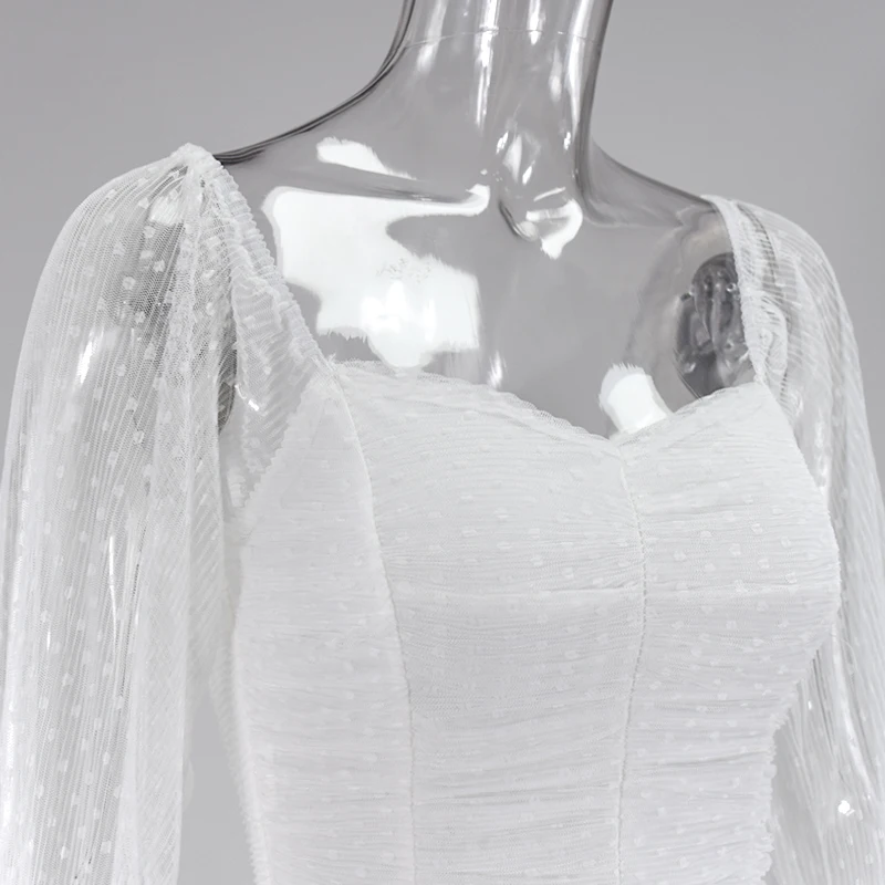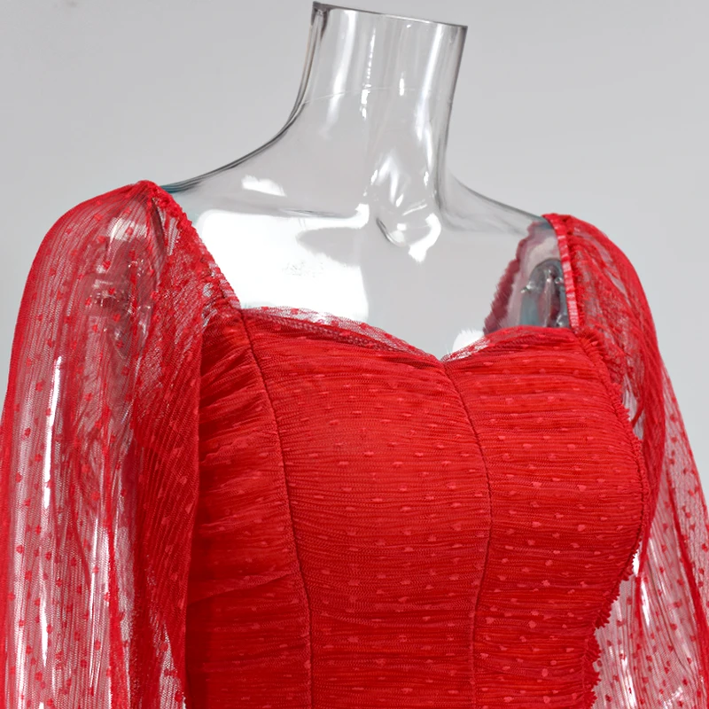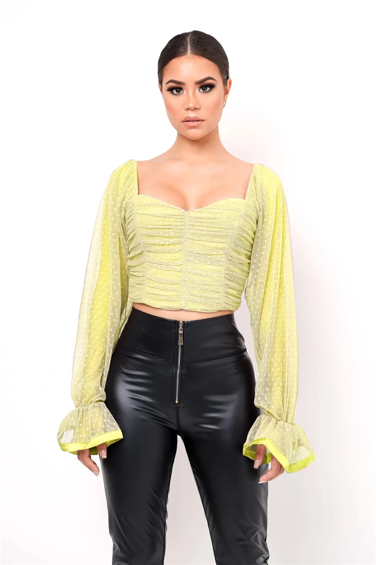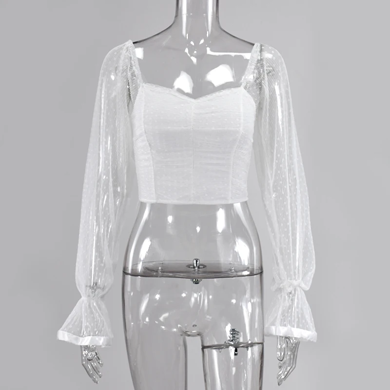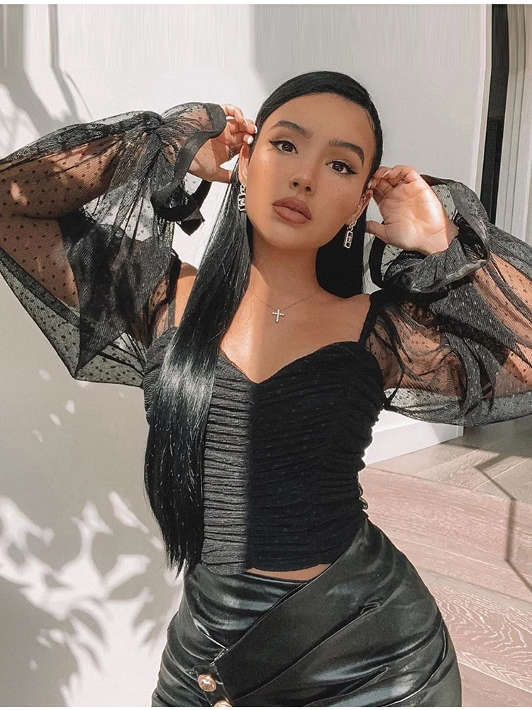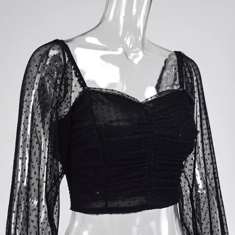 NewAsia Garden Sweet Pink Blouse Women Puff Sleeve Ruffles Mesh Polka Dot Tops Vintage Big Square Collar Solid Color Blusas 2020