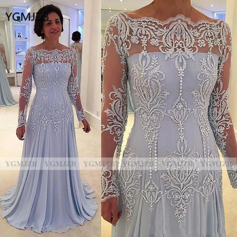 Off The Shoulder Mother of The Bride Dresses A-Line Long Sleeve Beaded Lace Mother Dress For Wedding Party Mom Dress 2020