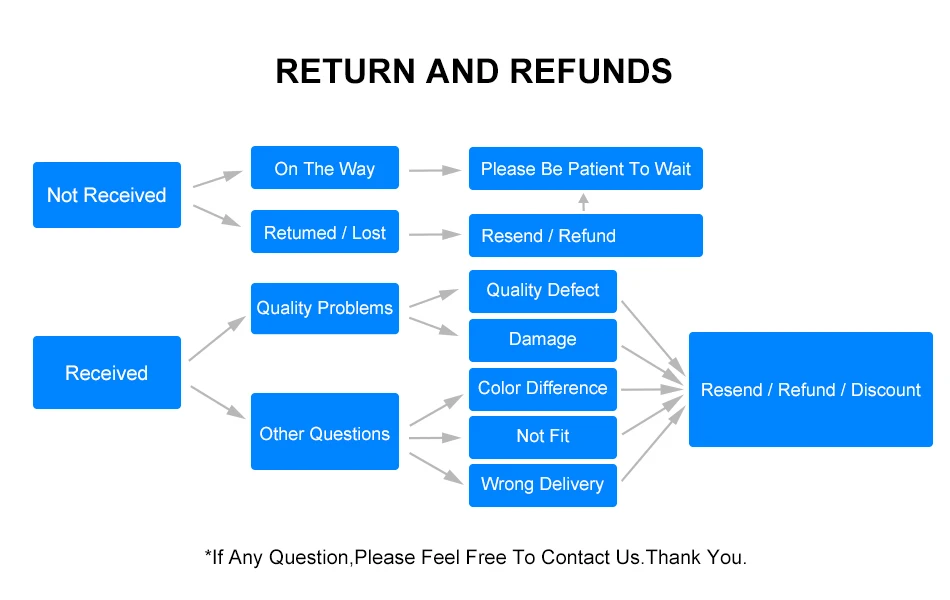 • If you did not receive the product within the guaranteed time( 45 days not including 2-5 day processing) you can request a refund or a reshipment.