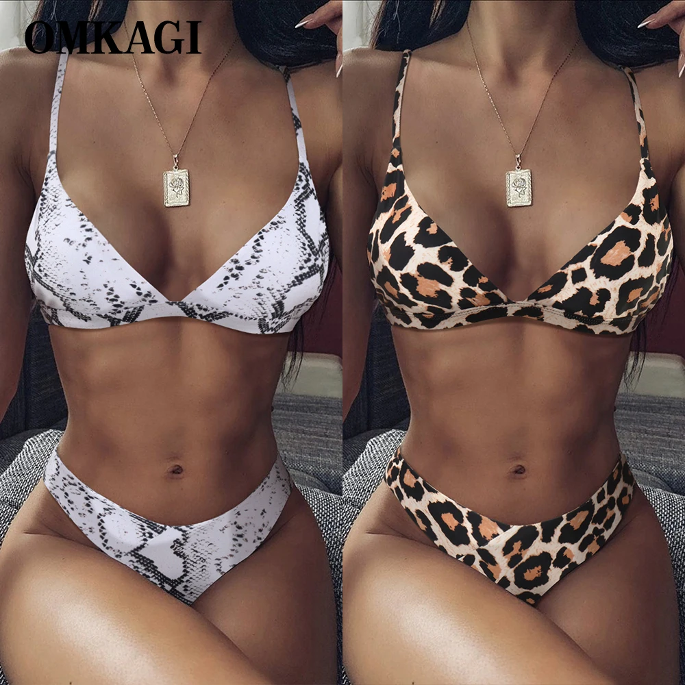 OMKAGI Bikini Micro Swimwear Women Leopard High Cut Swimming Bathing Suit Biquini Set Sexy Swimsuit Femme Brazilian Bikini 2020