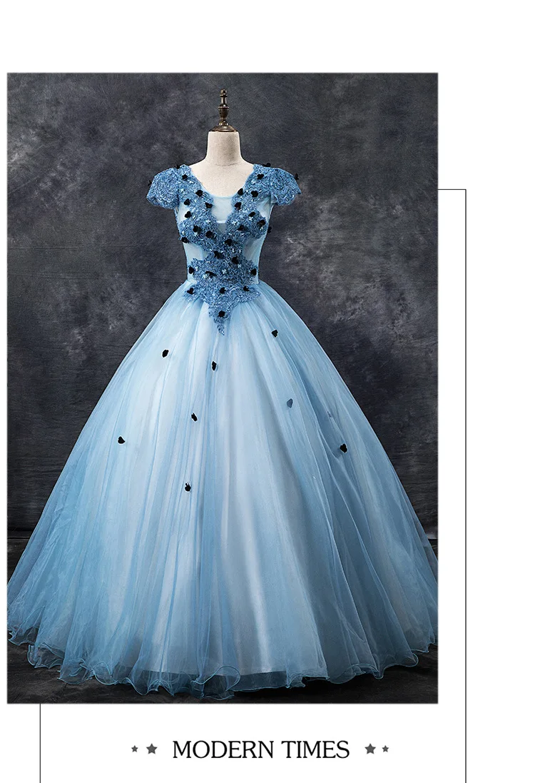 OPZC 2020 New O-Neck Cap Sleeve Luxury Lace Bead Party Vestidos 15 Anos Vintage Quinceanera Dresses Long prom Dress Colored Gown
