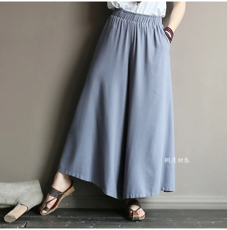 Original literature lazy wind oversized wide leg pants elastic waist drop feeling nine big leg spring and summe