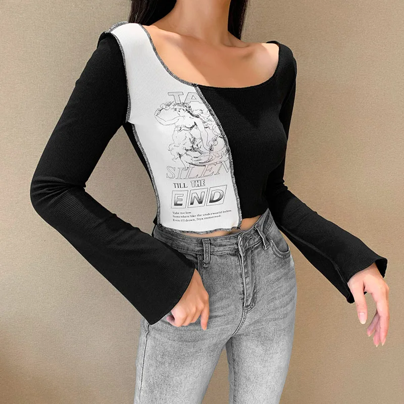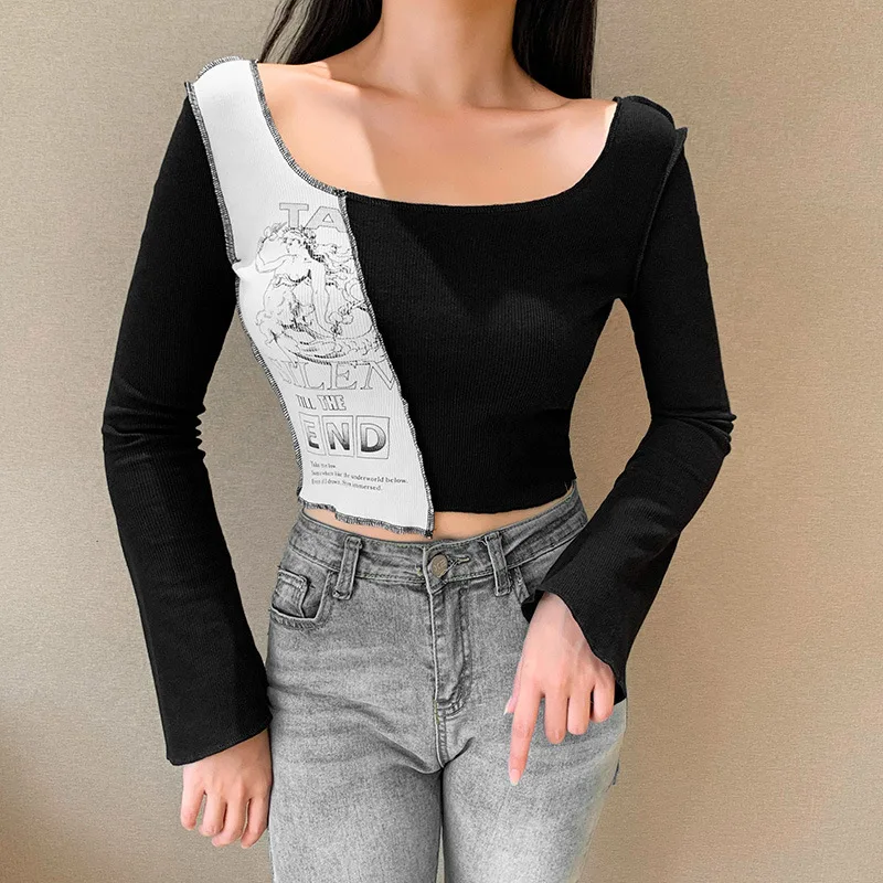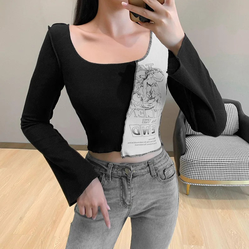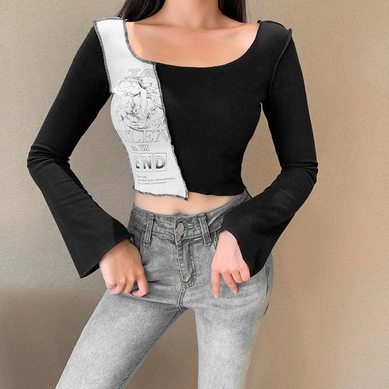 Patchwork Contrast Print Outerwear Tops Tee Vest Girls Casual Halter Top