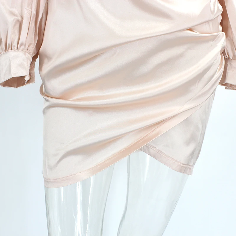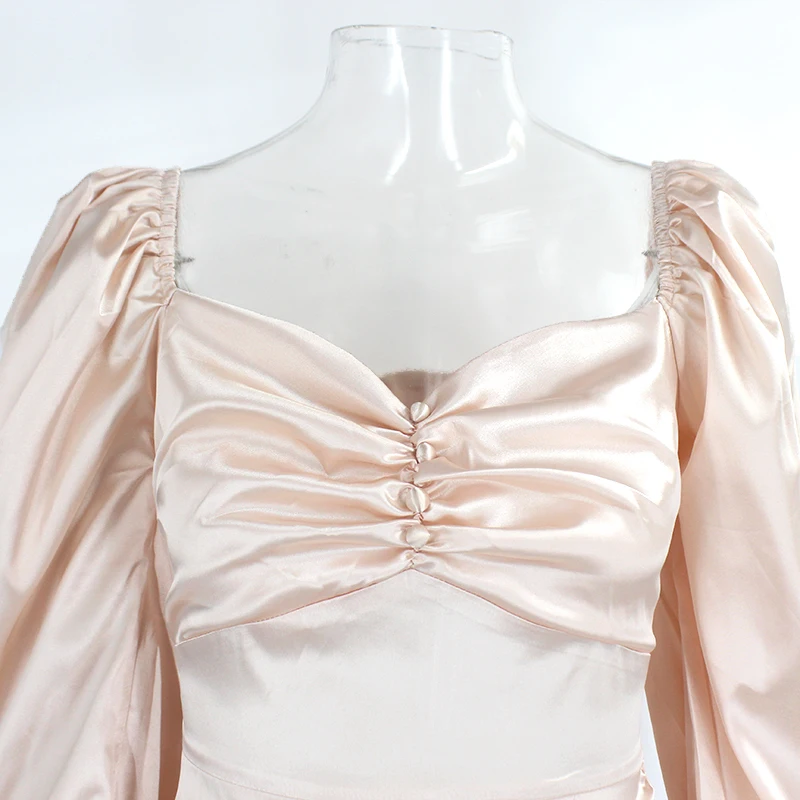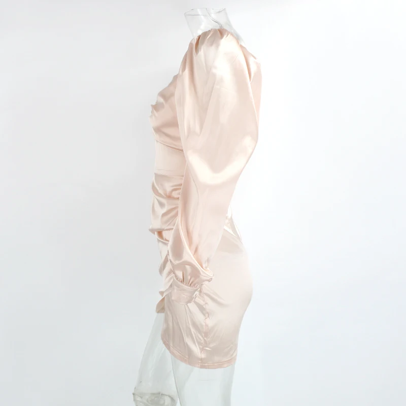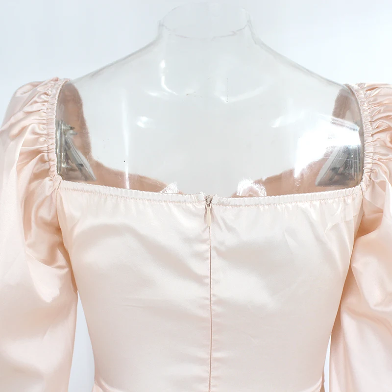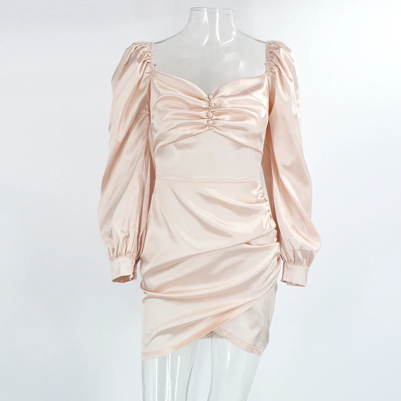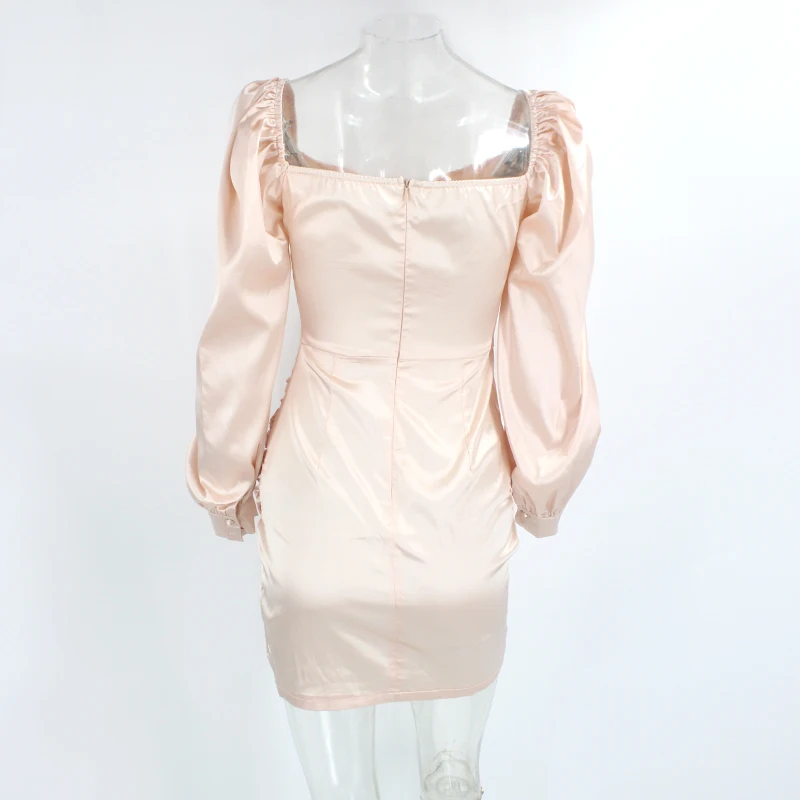 PFFLOOK Sexy Square Collar Party Dress Women Long Lantern Sleeves Ruched Bodycon Solid Mini Vestidos Zipper Autumn Black Dresses
