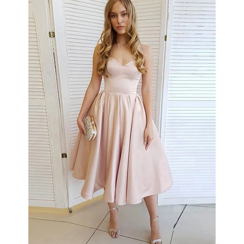 Pink Satin Cocktail Dresses 2020 Short Formal Party Short Prom Dresses Homecoming Vestidos De Gala Simple Women Graduation Gowns