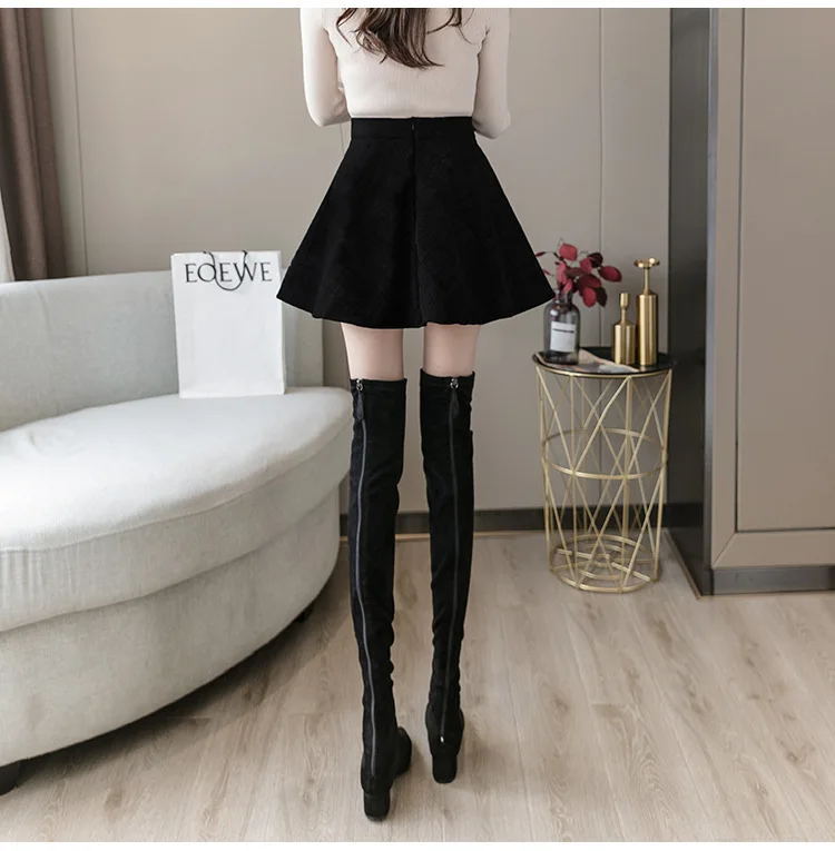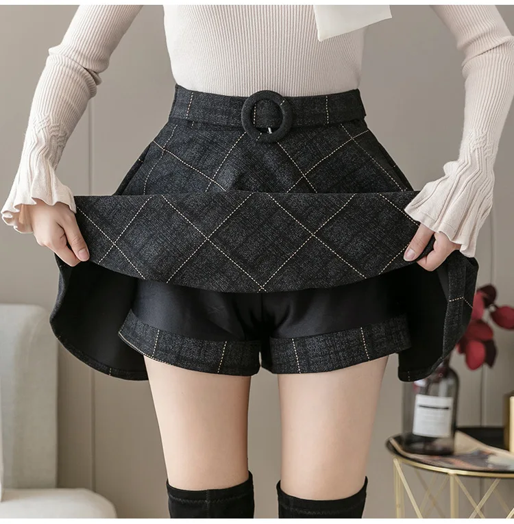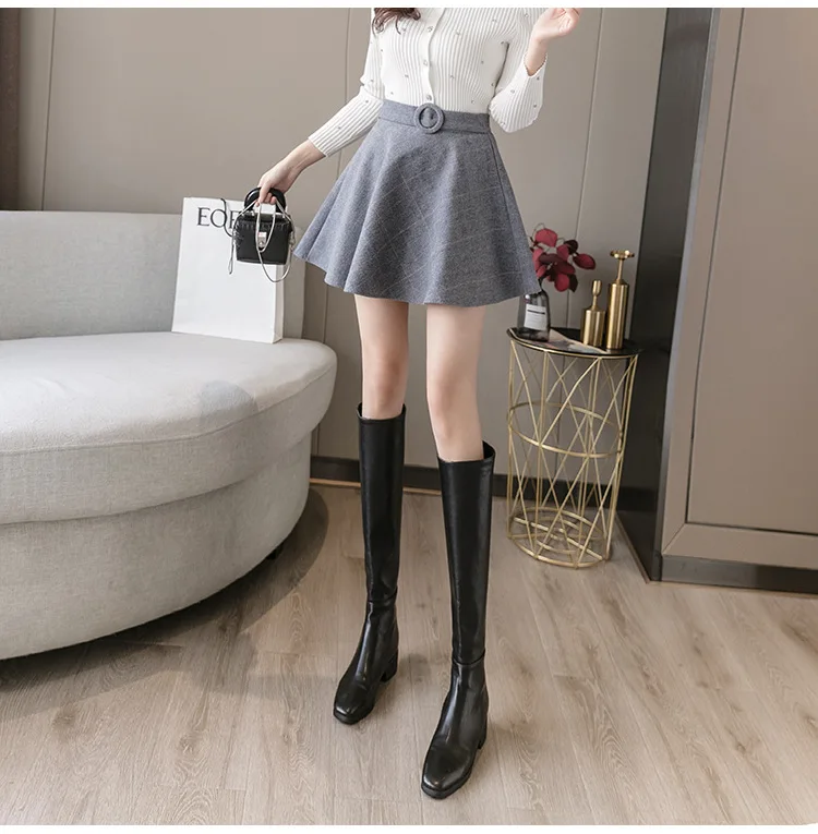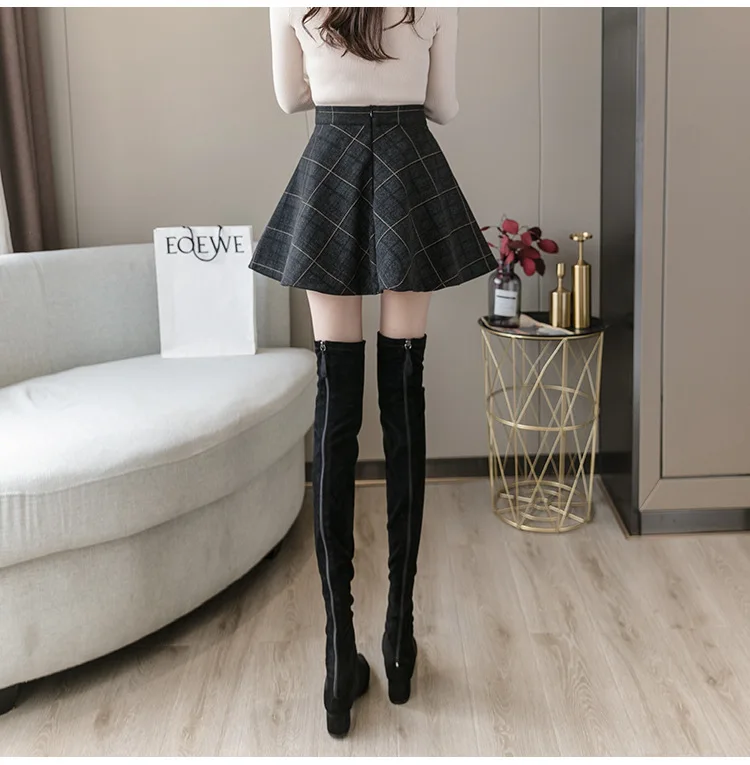 Black Skirt Women 2020 Autumn High Waist A-Line Winter Vintage Casual Lattice Mini Plaid Short Skirts Female Warm Gray