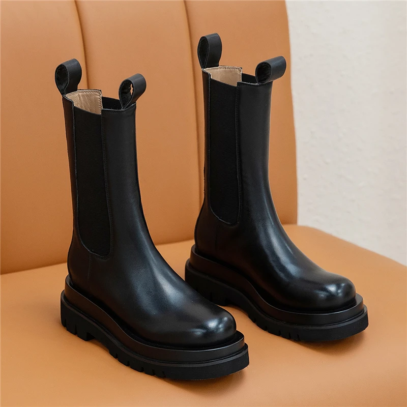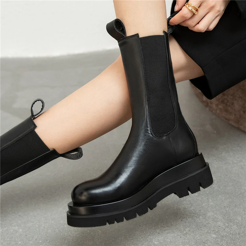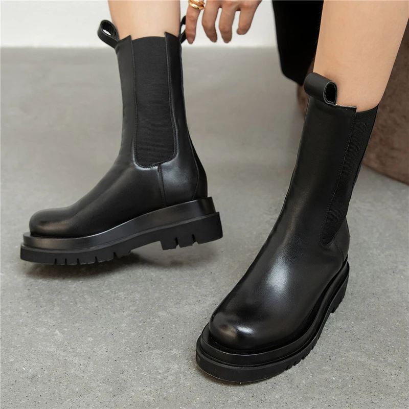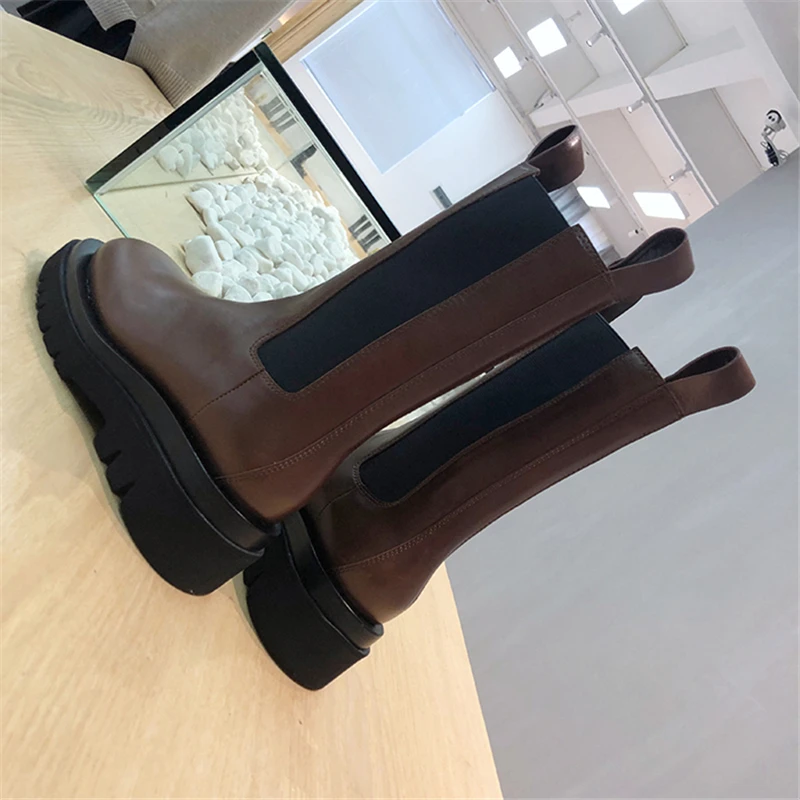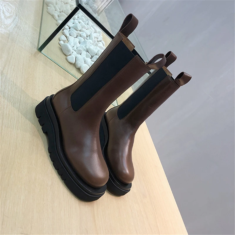 Platform Boots Winter Genuine Leather Chelsea Boots Women Luxury Brand Designer Ladies Botas Mujer Matin Boots Short Booties