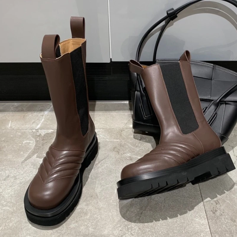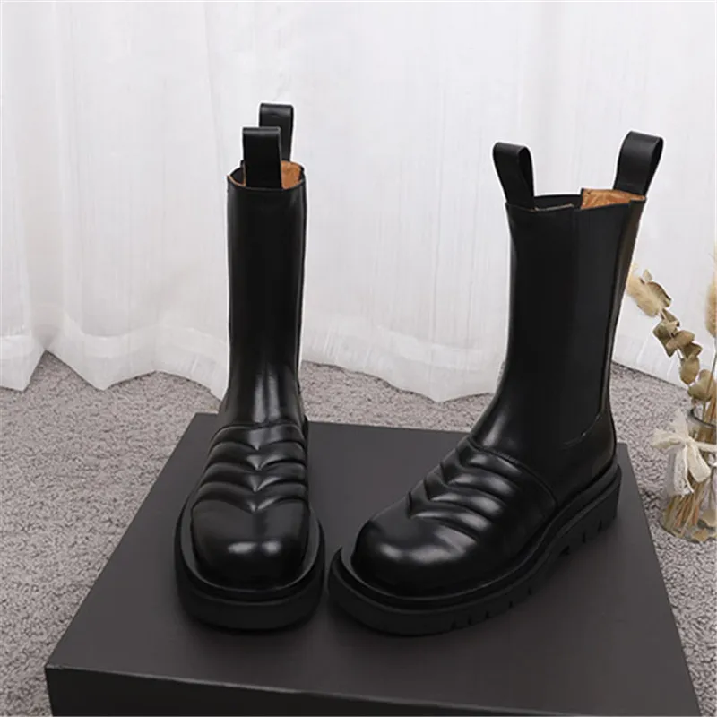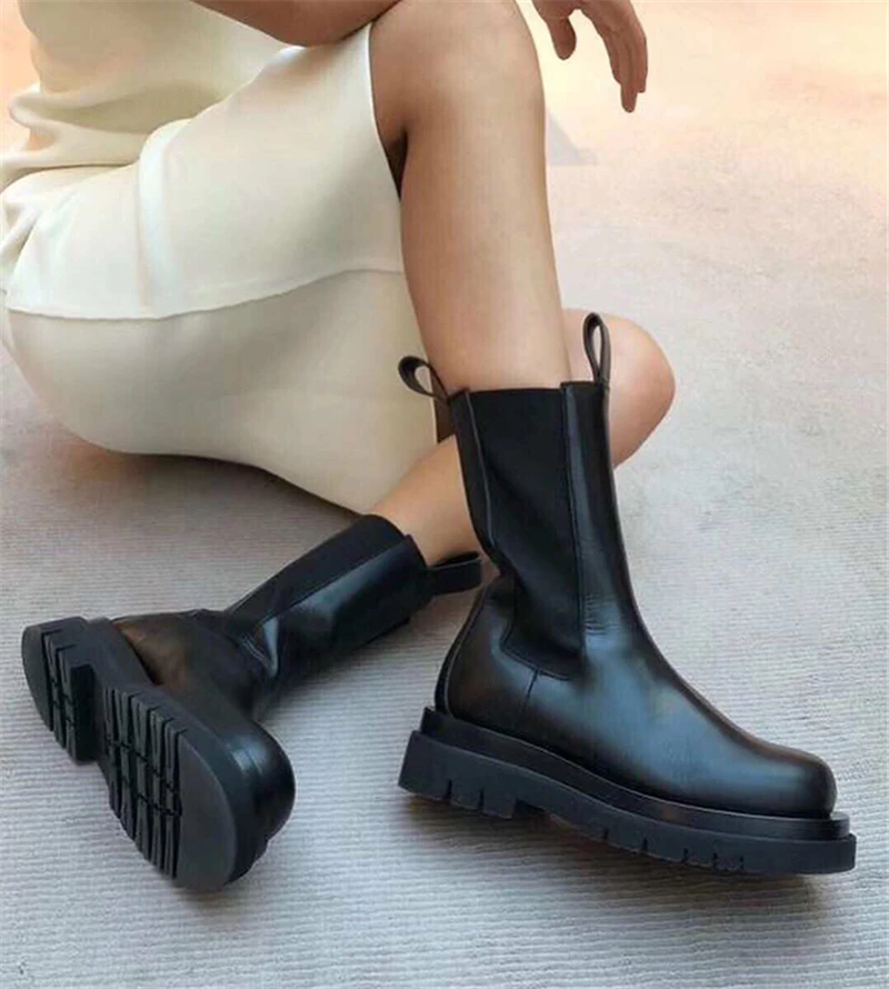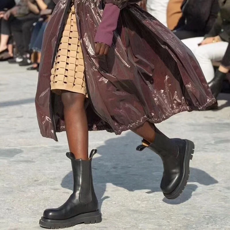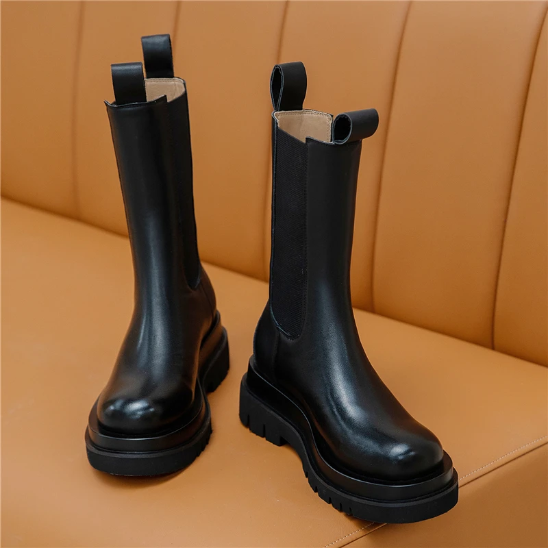 Platform Boots Winter Genuine Leather Chelsea Boots Women Luxury Brand Designer Ladies Botas Mujer Matin Boots Short Booties