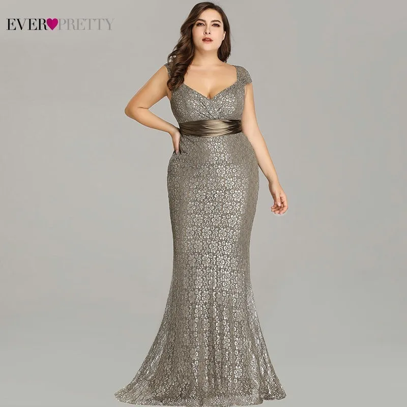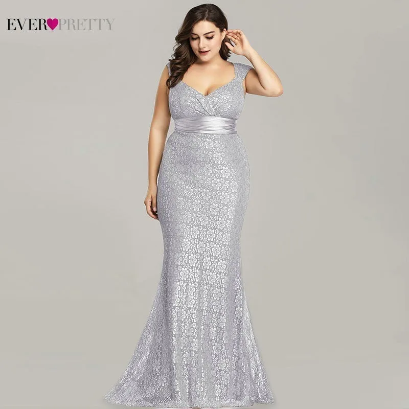 Plus Size Evening Dresses 2020 Ever Pretty EP08798CF Elegant Mermaid Lace Sleeveless Party Gowns Vintage Sexy Robe De Soiree