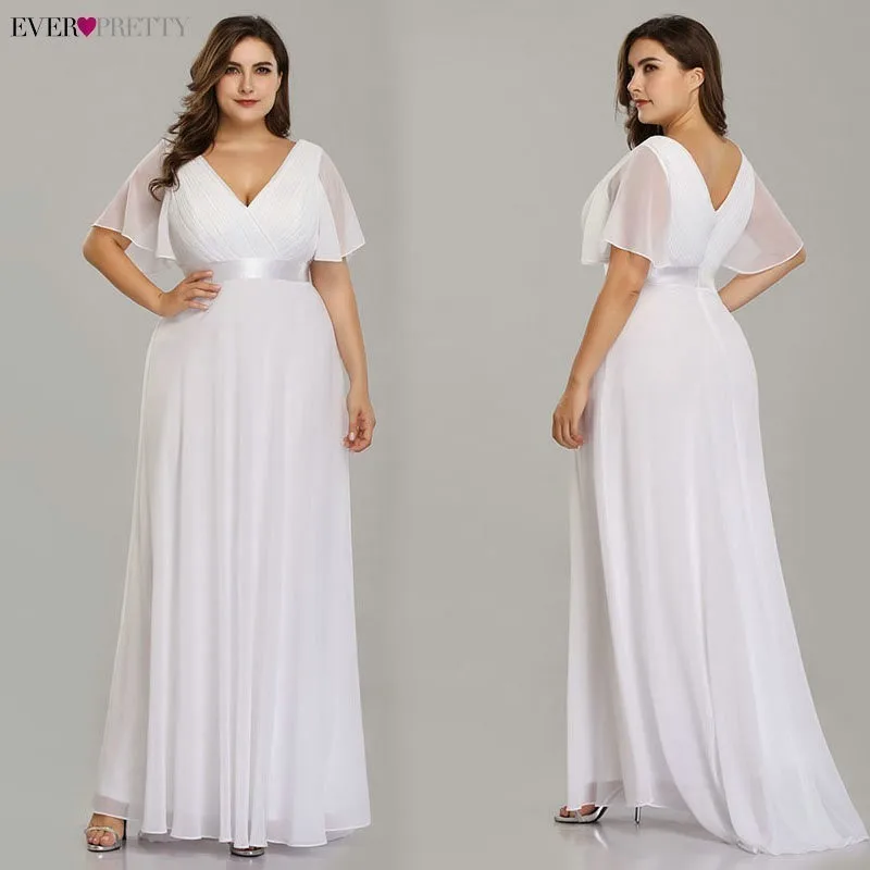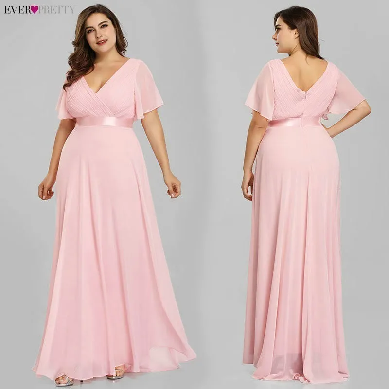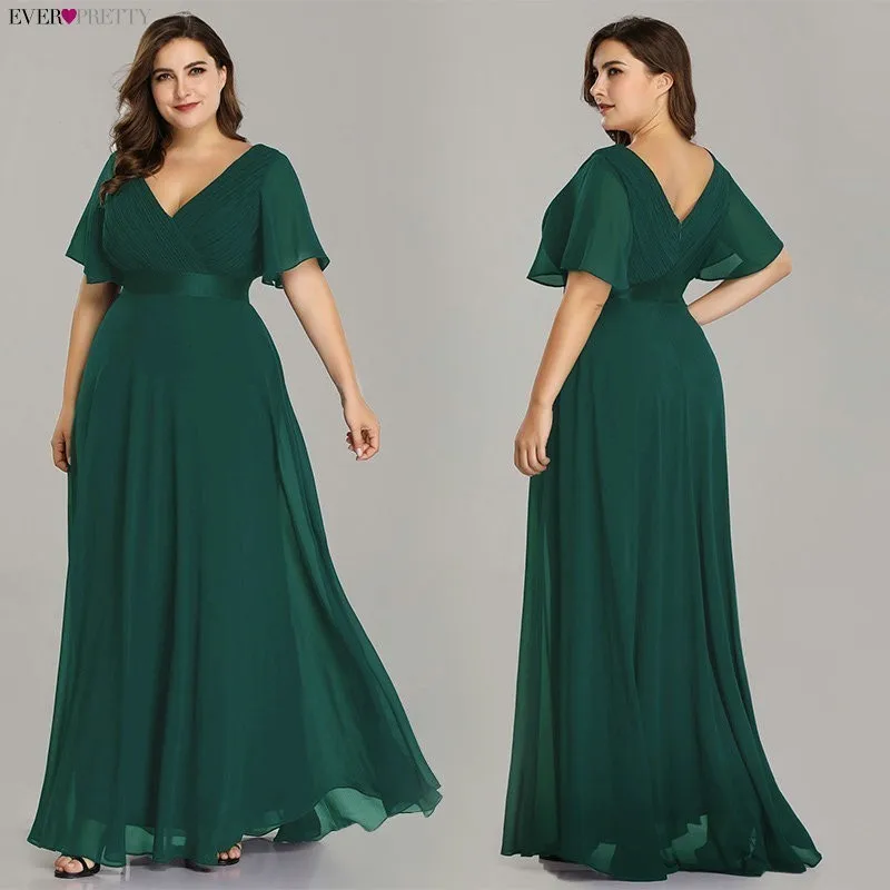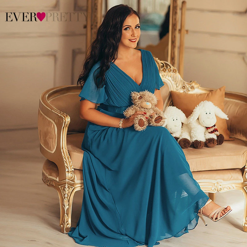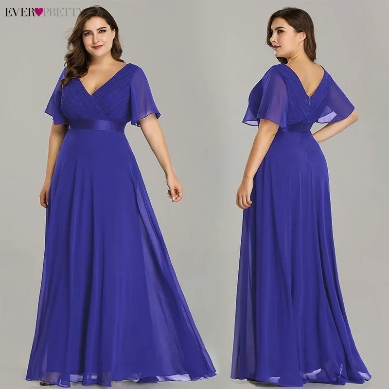 Plus Size Evening Dresses Ever Pretty V-neck Nay Blue Elegant A-line Chiffon Long Party Gowns 2020 Short Sleeve Occasion Dresses