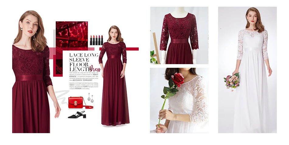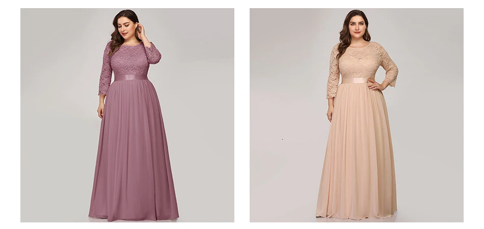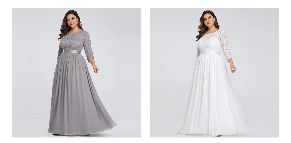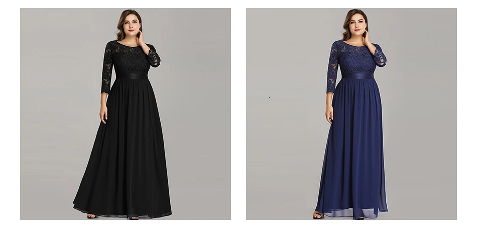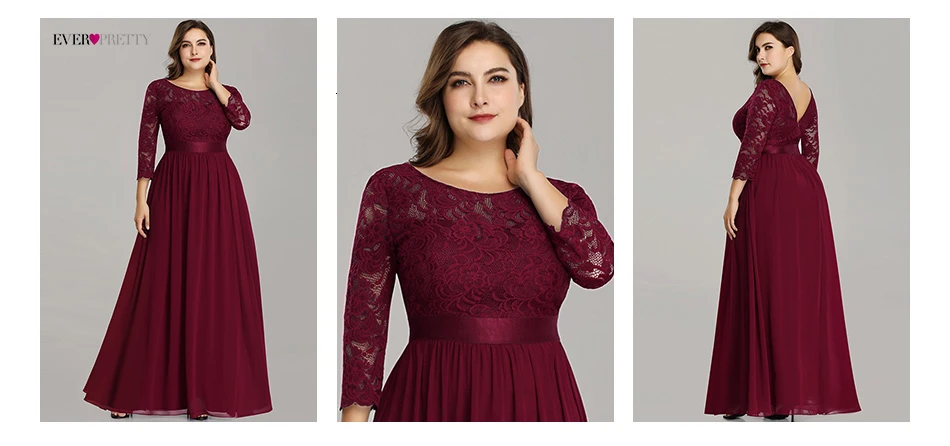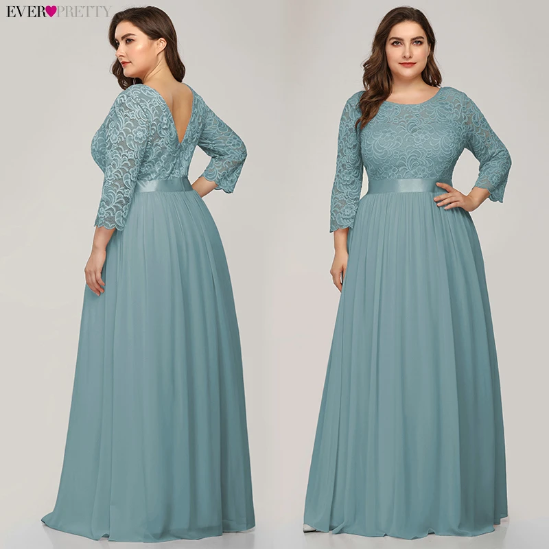 Plus Size Evening Dresses Long Ever Pretty EP07412 Elegant Long Sleeve A-line Lace Chiffon Navy Blue Winter Wedding Guest Dresse