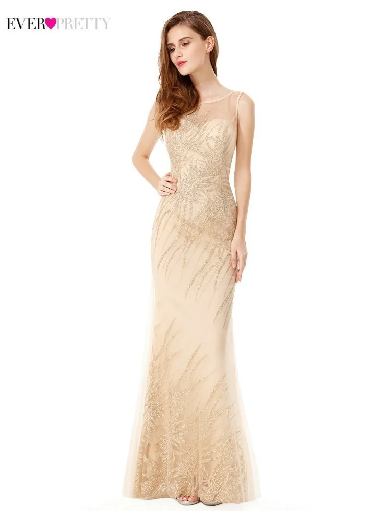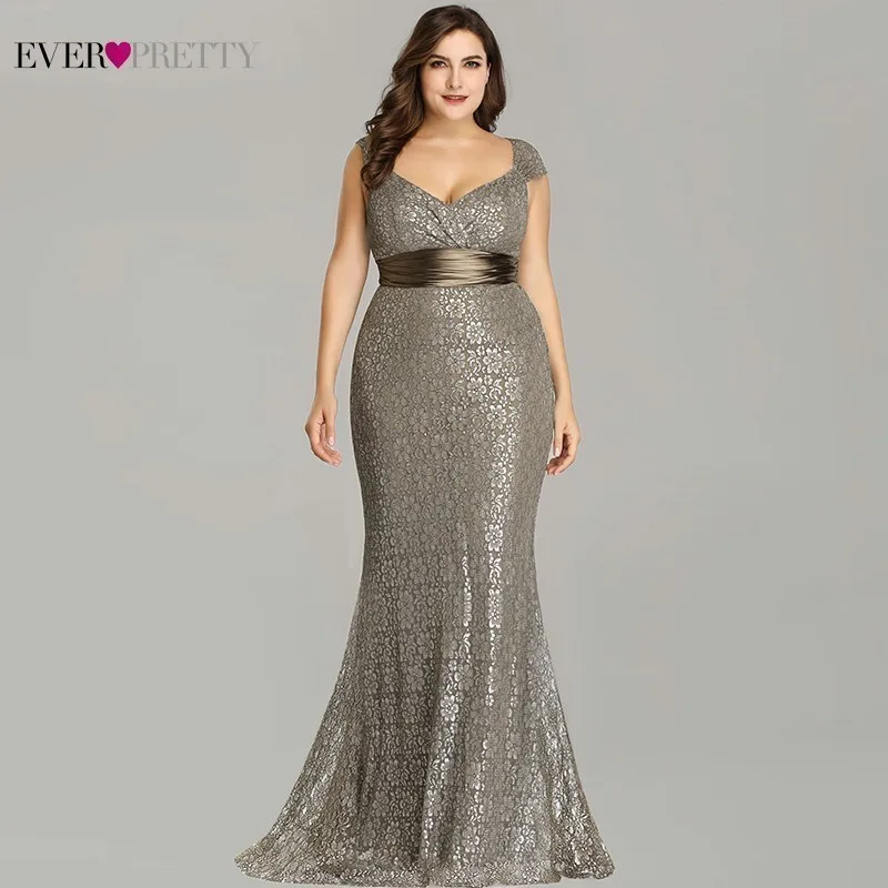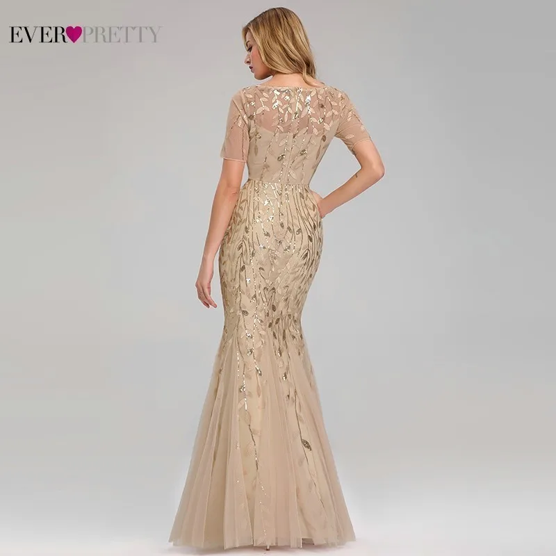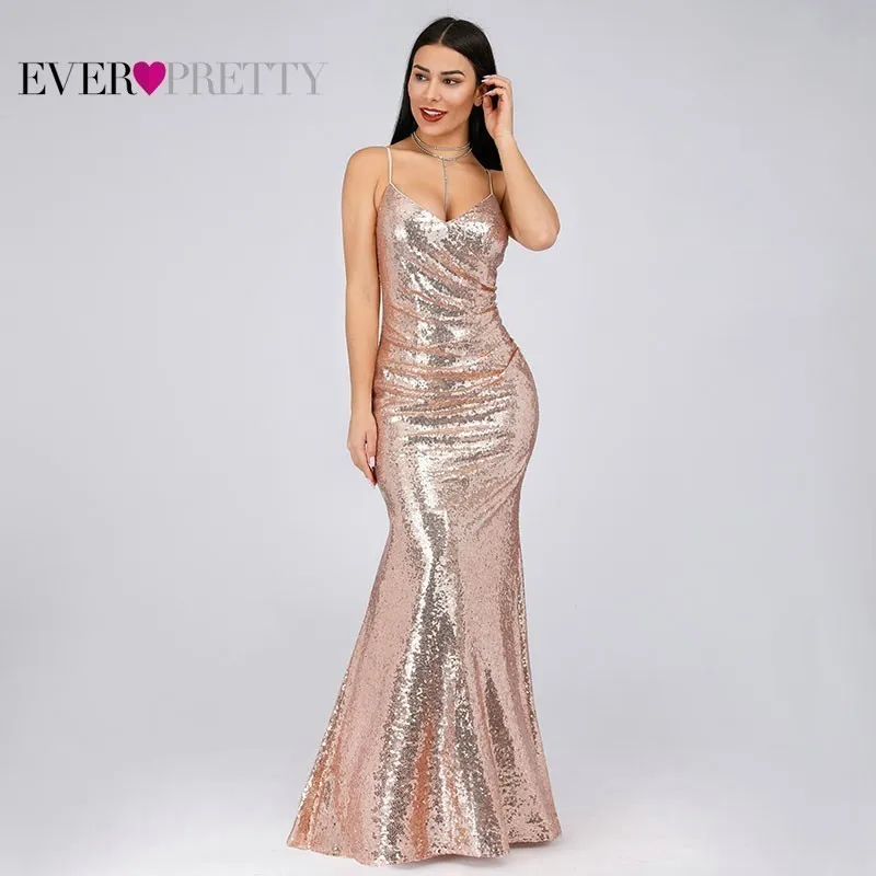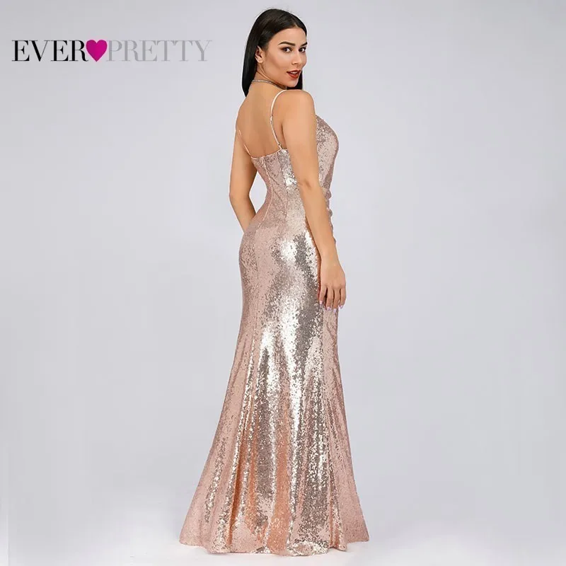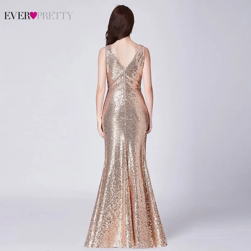 Plus Size Gold Sequined Evening Dresses Ever Pretty Mermaid V-Neck Elegant Women Formal Party Long Dresses Abendkleider 2020
