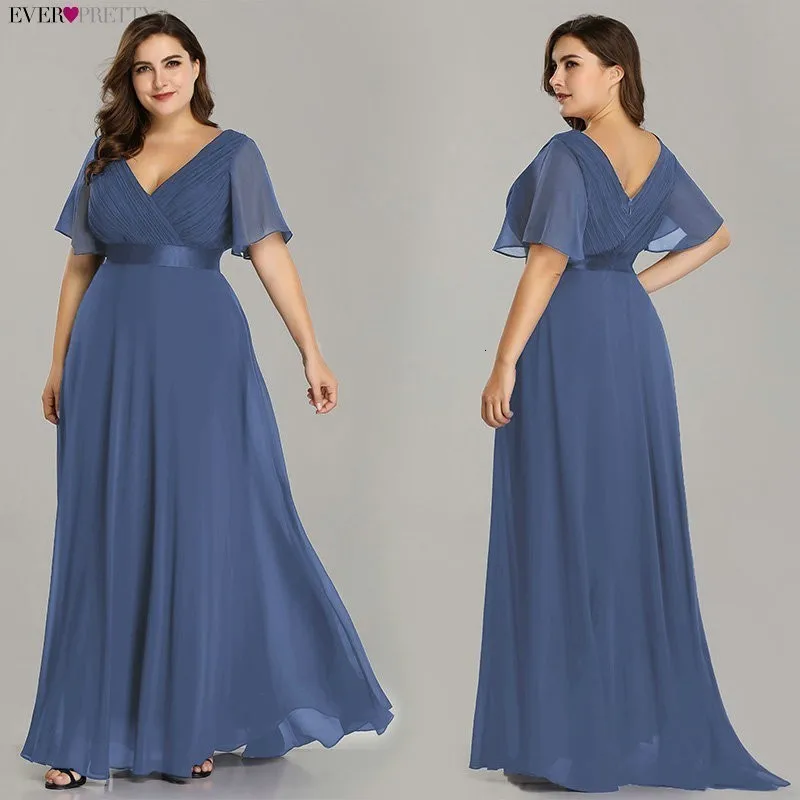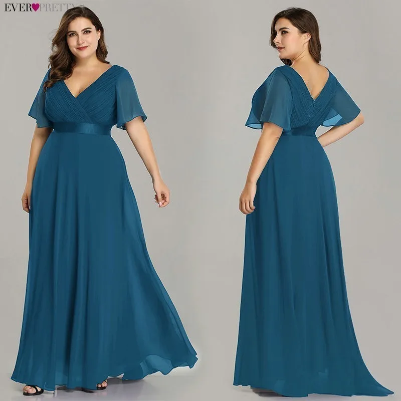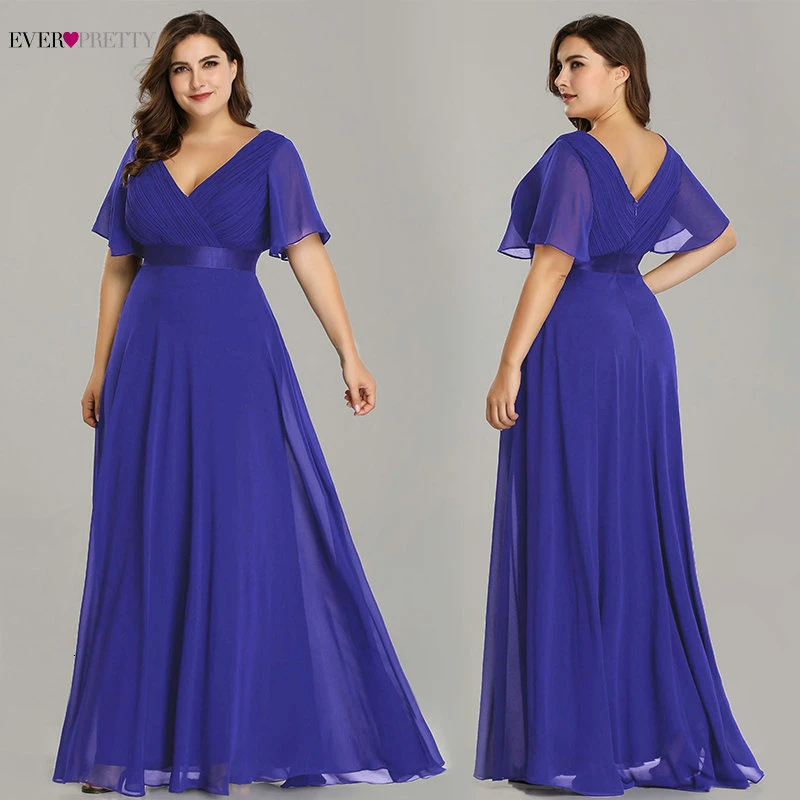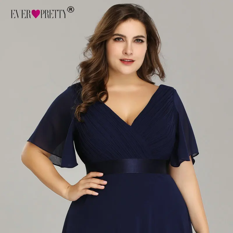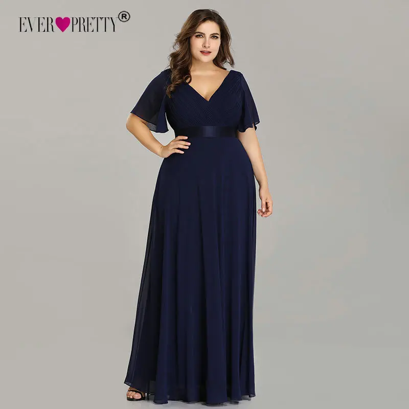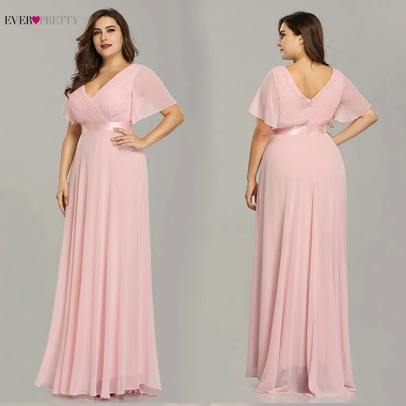 Plus Size Pink Prom Dresses Long Ever Pretty V-Neck Chiffon A-line Robe De Soiree 2020 Navy Blue Formal Party Gowns for Women