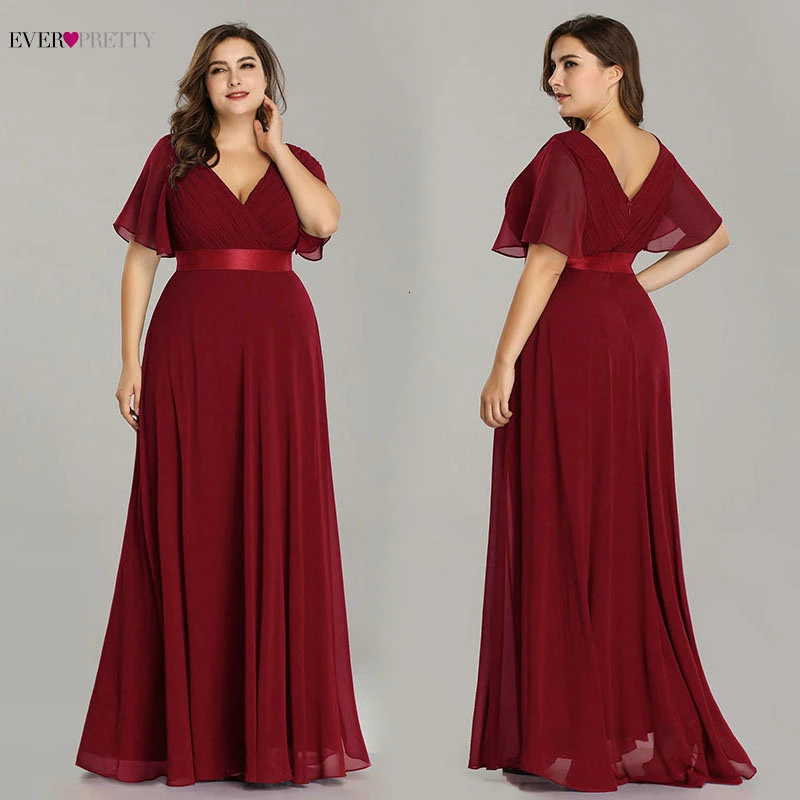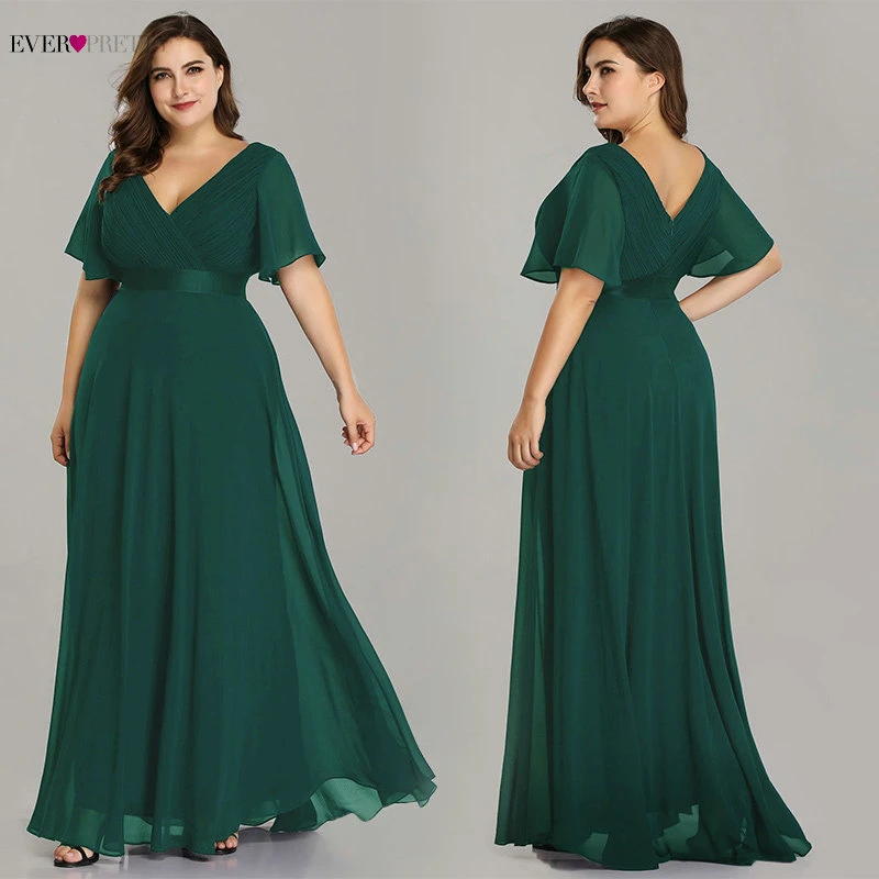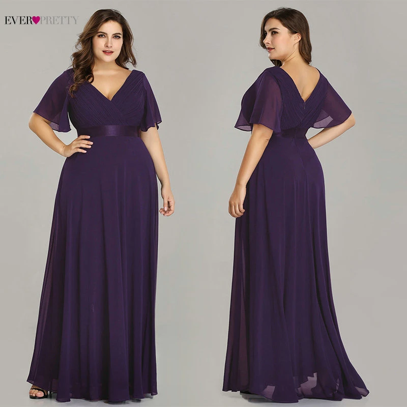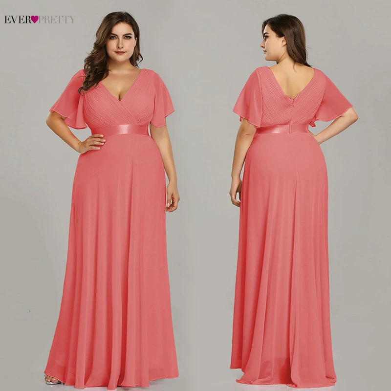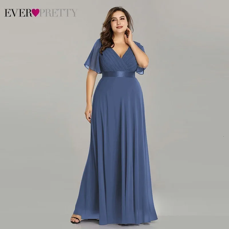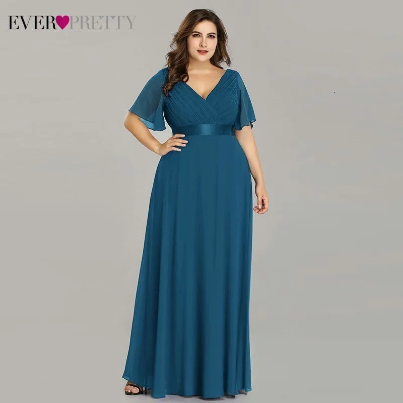 Plus Size Pink Prom Dresses Long Ever Pretty V-Neck Chiffon A-line Robe De Soiree 2020 Navy Blue Formal Party Gowns for Women