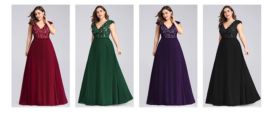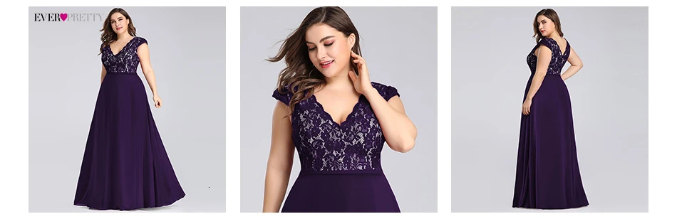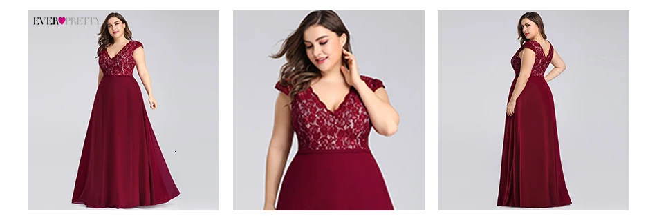 Plus Size Prom Dresses Long 2020 Ever Pretty EP07344 Elegant Burgundy A-line Sleeveless Lace Appliques V-neck Vestidos De Gala
