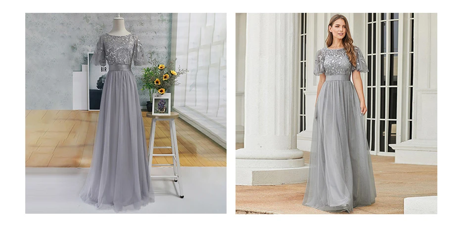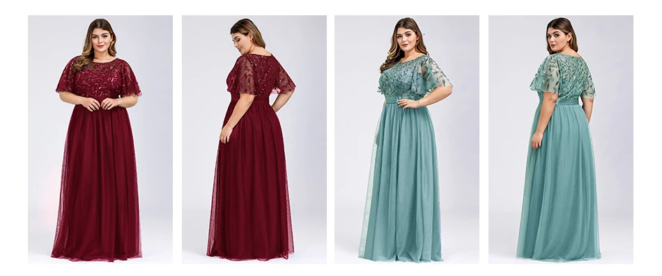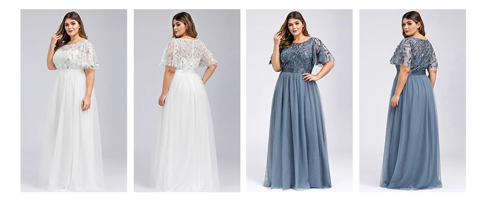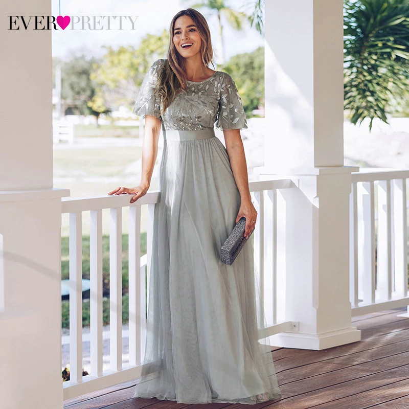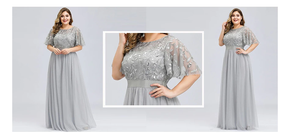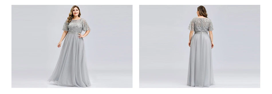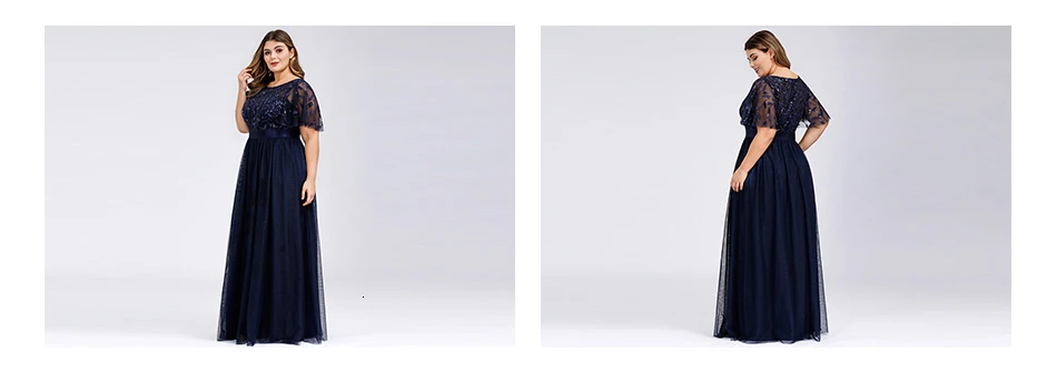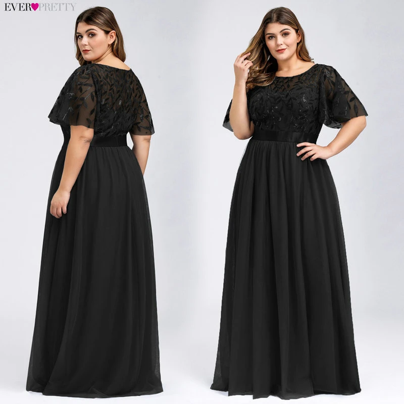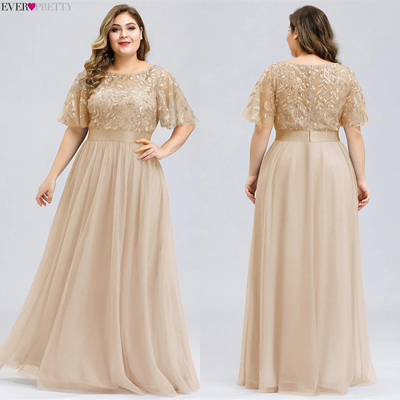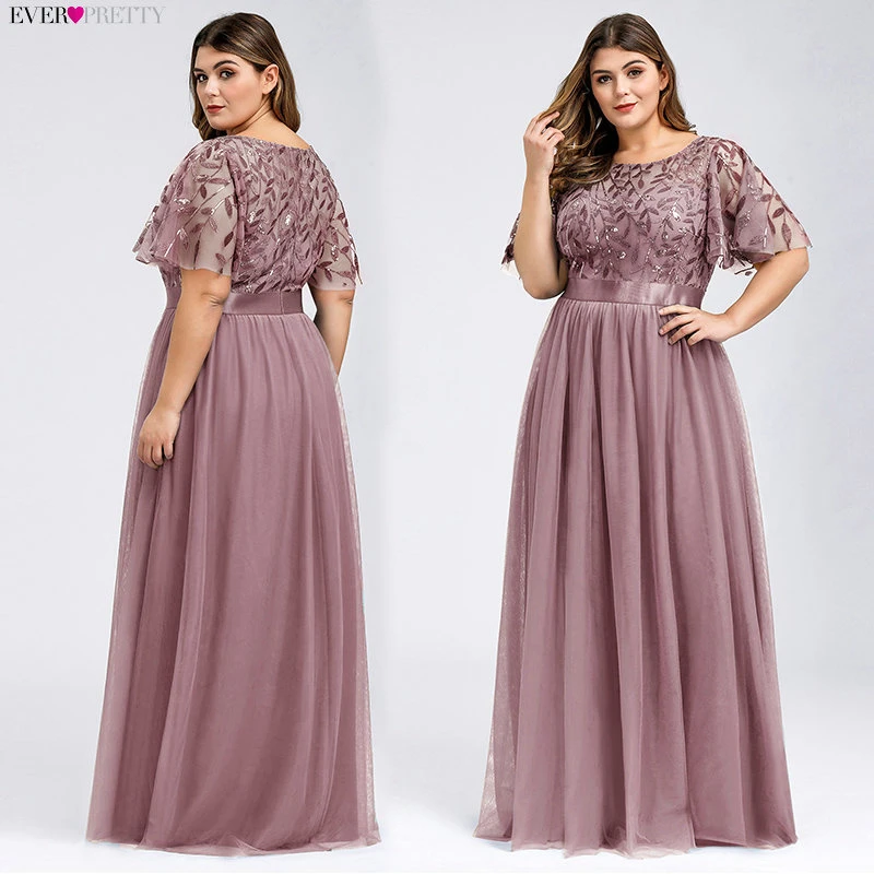 Plus Size Sequined Evening Dresses Long Ever Pretty A-Line O-Neck Tulle Elegant Formal Evening Gowns Vestido Noche Elegante 2020