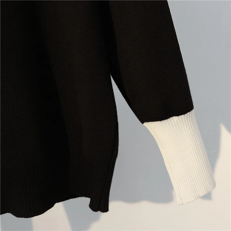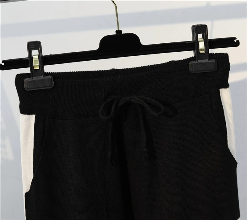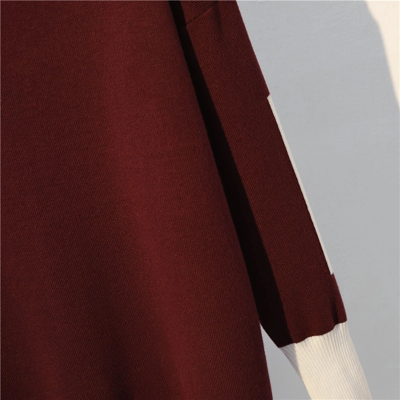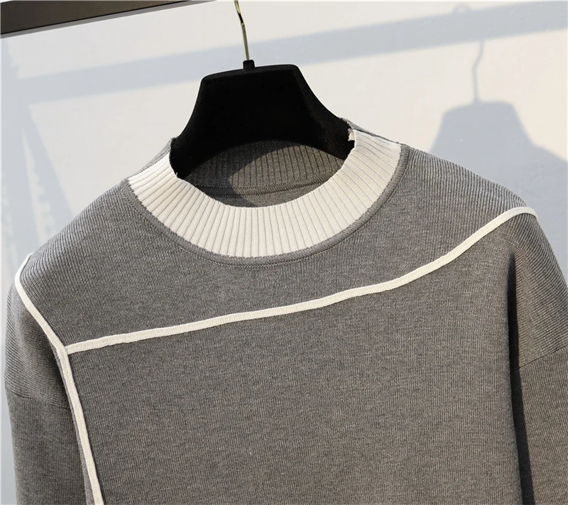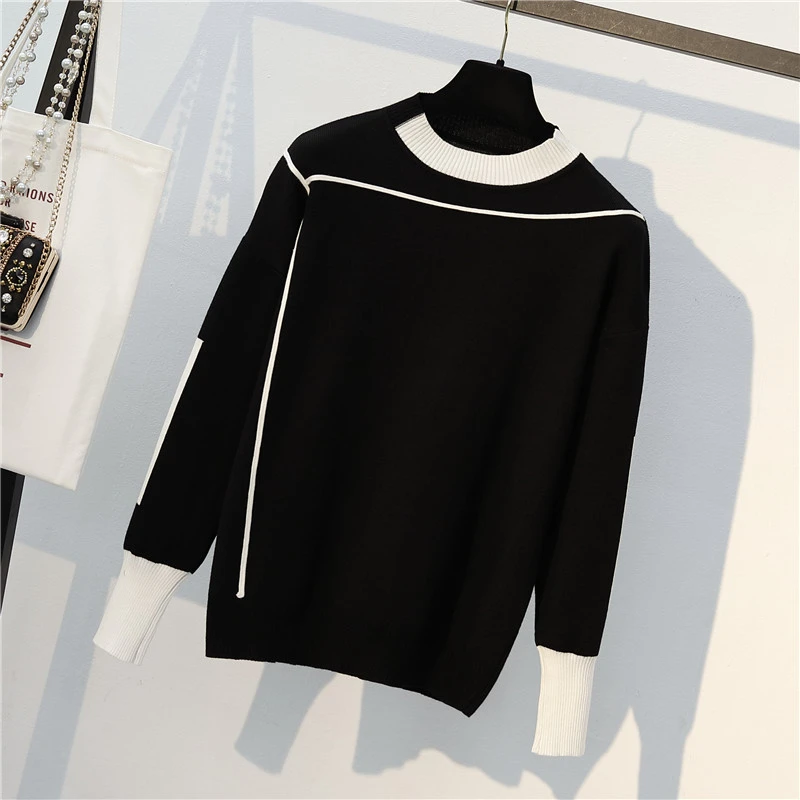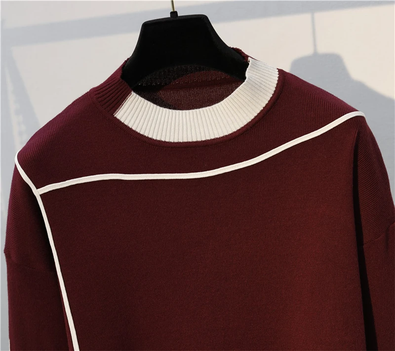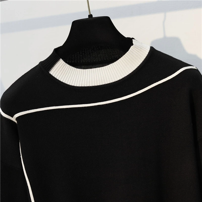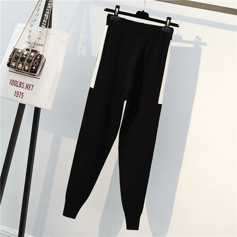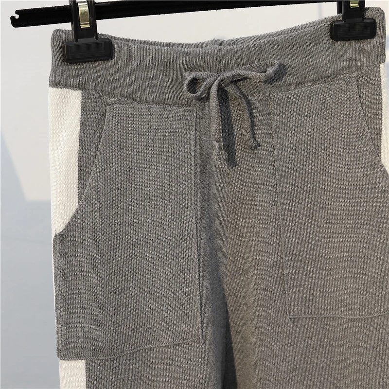 Plus Size Stripe Patchwork Knitted 2 Piece Suit For Women O-Neck Knit Sweater Tops And Sweatpants New Casual Tracksuit Female