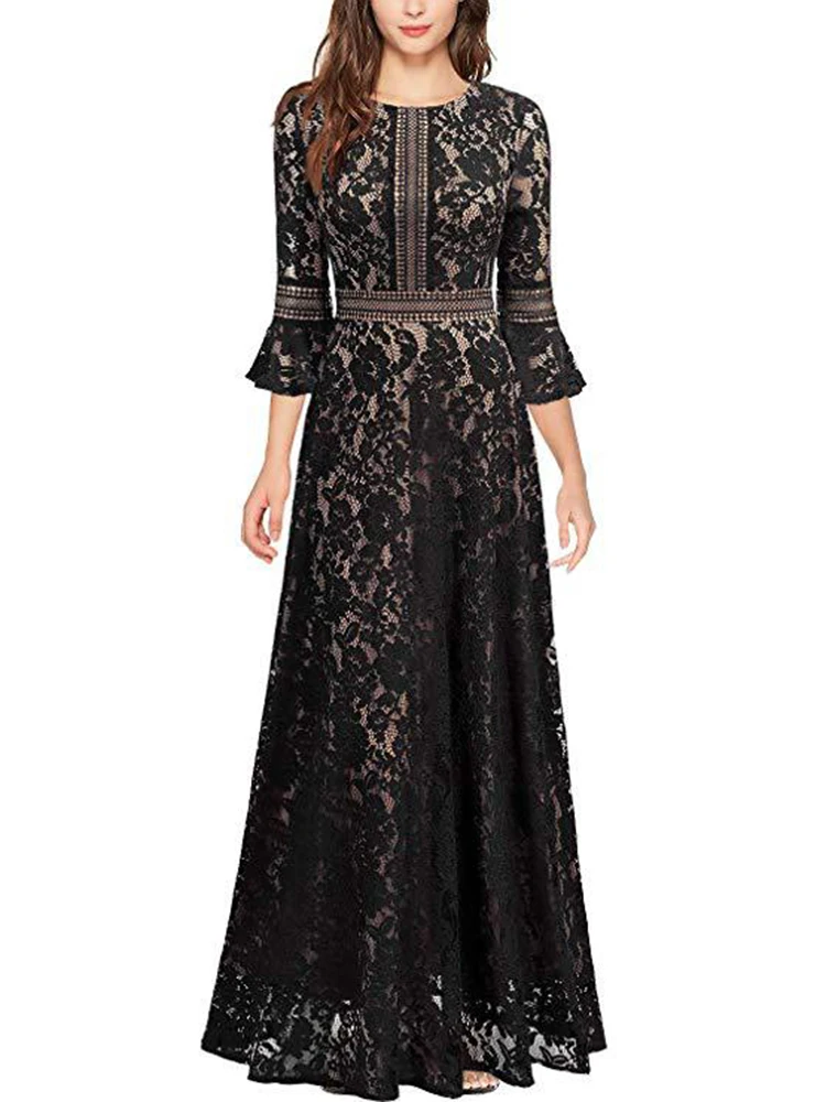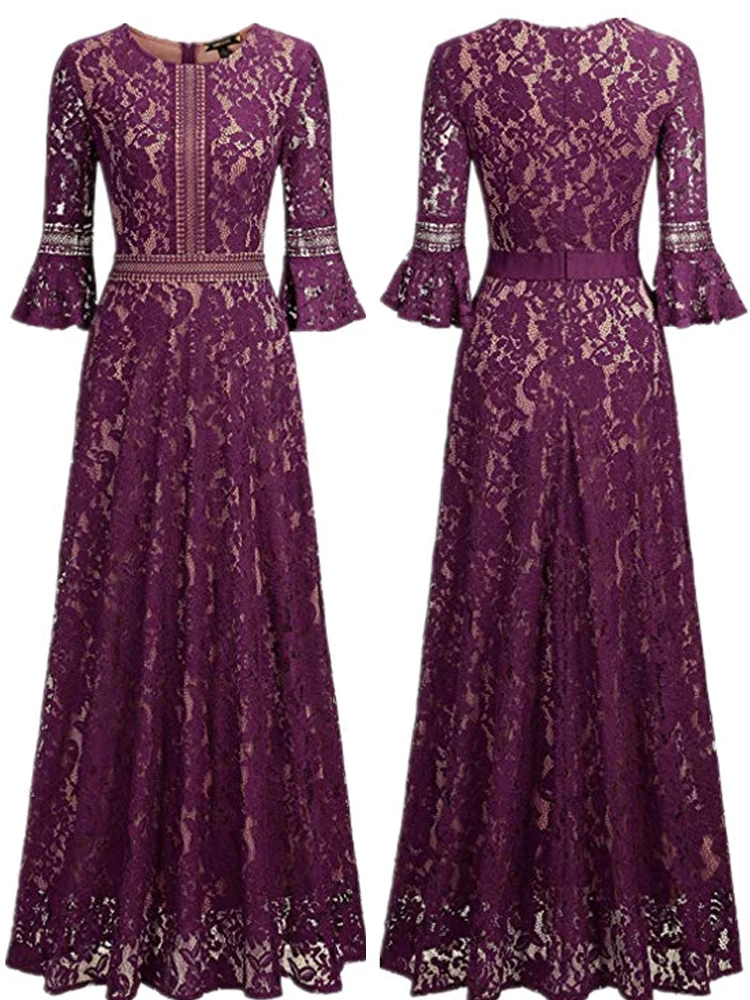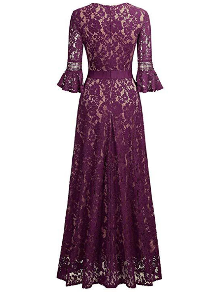 Purple Lace Evening Gown Cut-out Black lace Formal Dress Flounces Sleeve Elegant Long Evening Dress XUCTHHC 2020 New Prom Dress