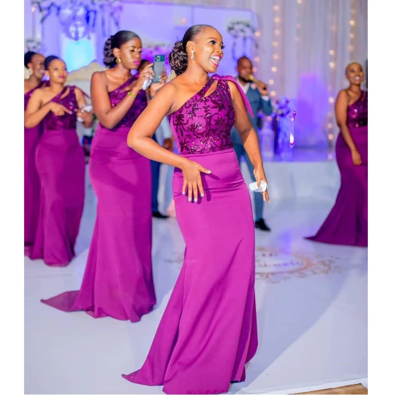 Purple Sparkly Lace Bridesmaid Dresses One Shoulder Mermaid Wedding Party Dress vestidos 2020 African Girls Prom Formal Gown