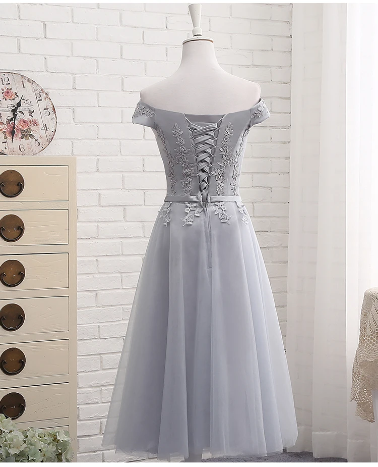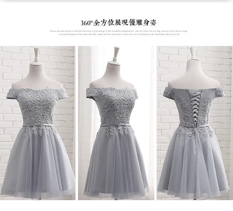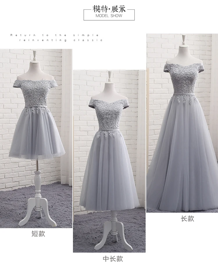 QNZL987#Off Shoulder Gauze gray lace up bridesmaid dresses new spring summer 2020 short Middle long style party prom dress girls