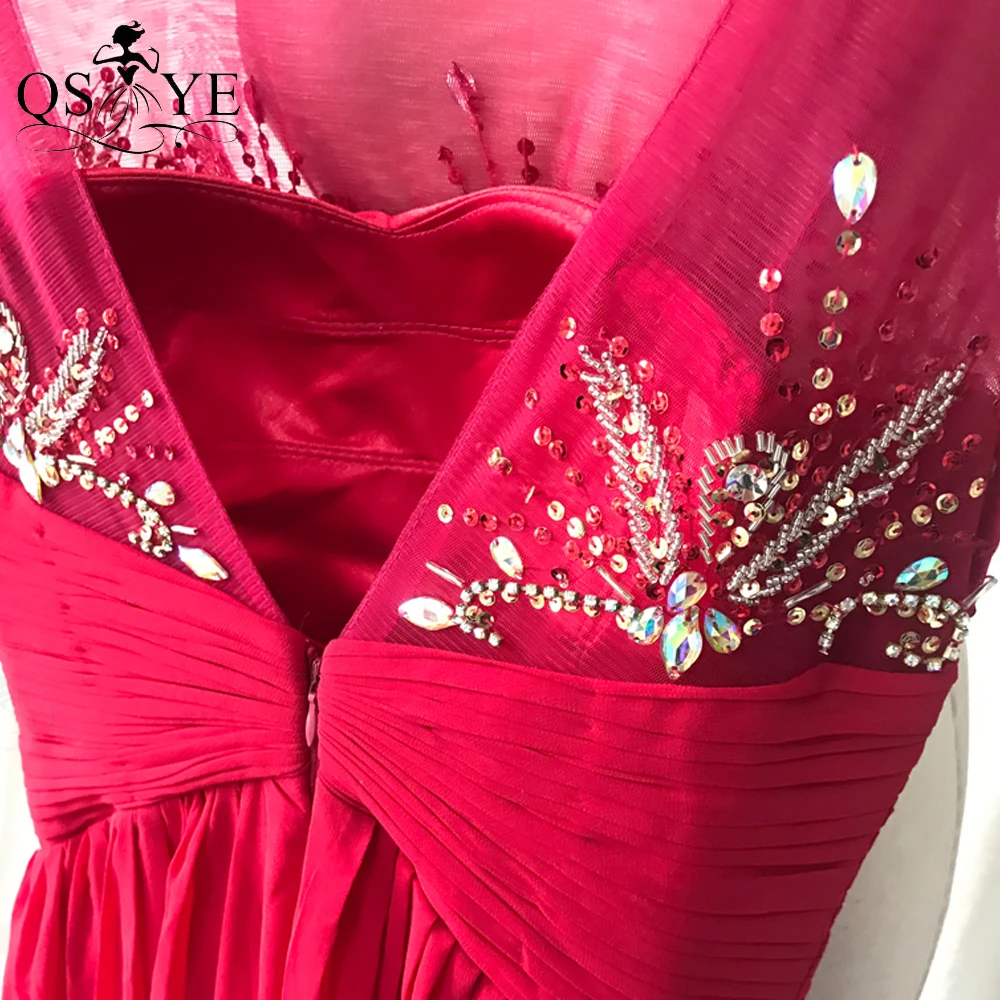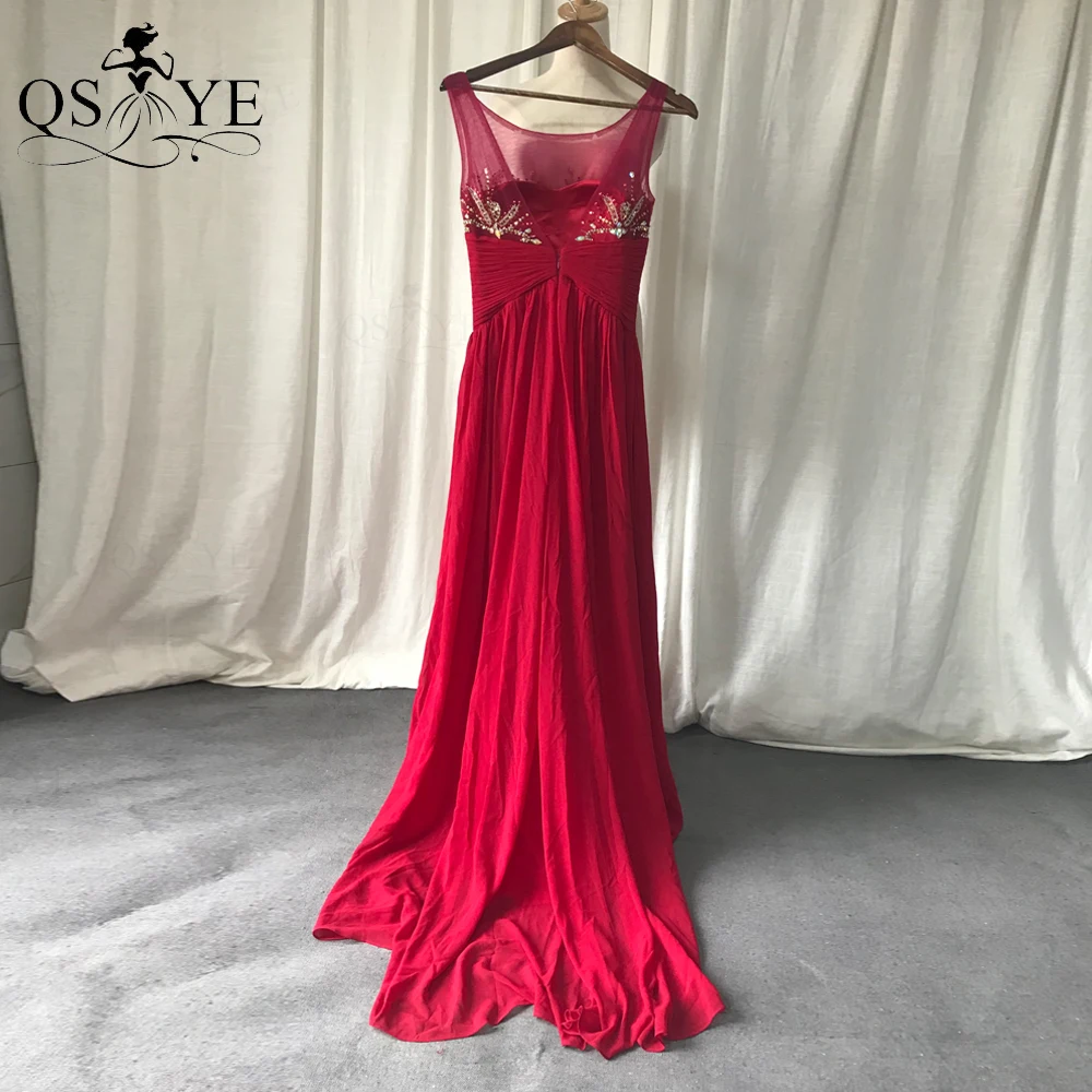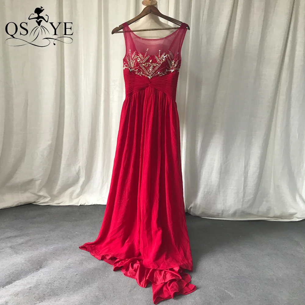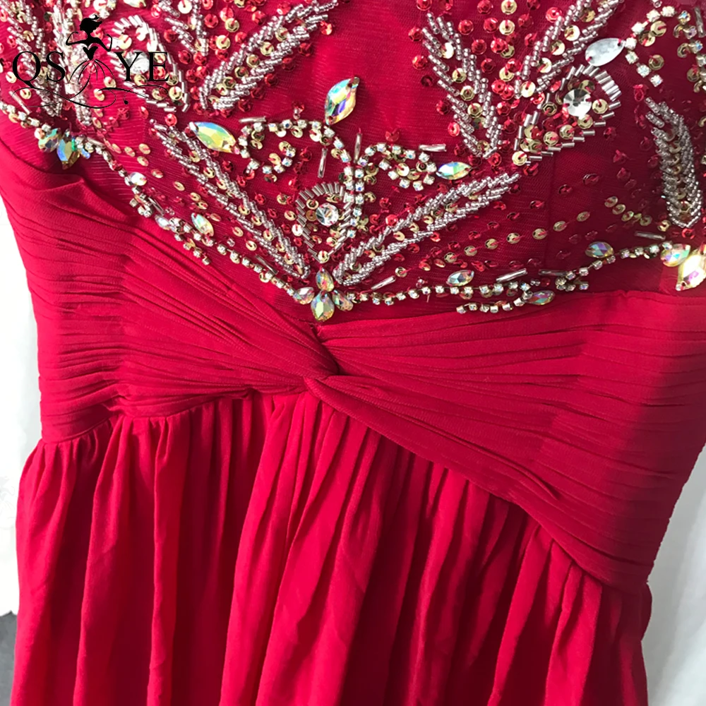 QSYYE Broken Size Red Mother of the Bride Dresses 2020 Chiffon Round Neck Long Evening Dress Beading Ruched Waist Mom Prom Dress