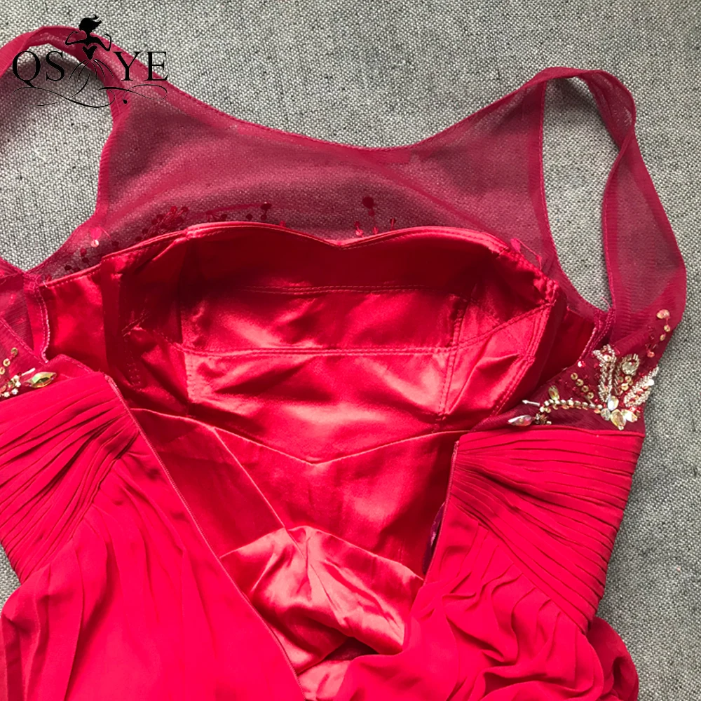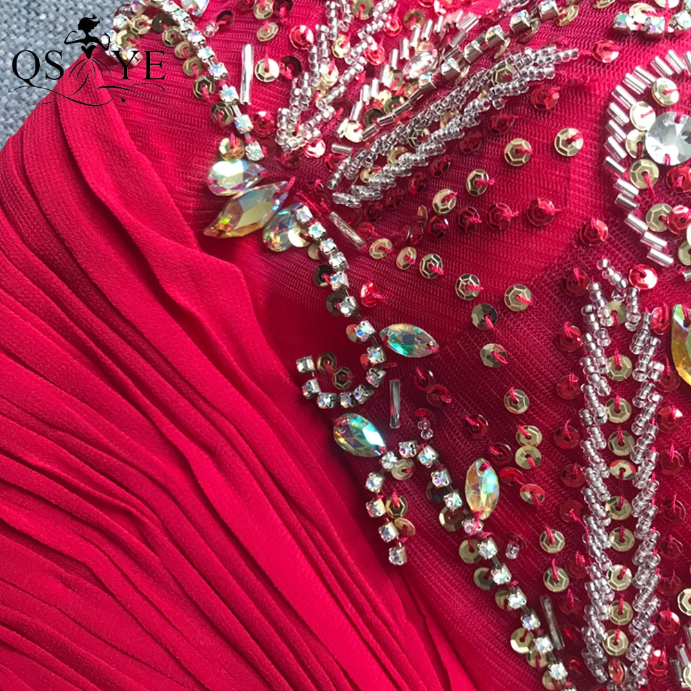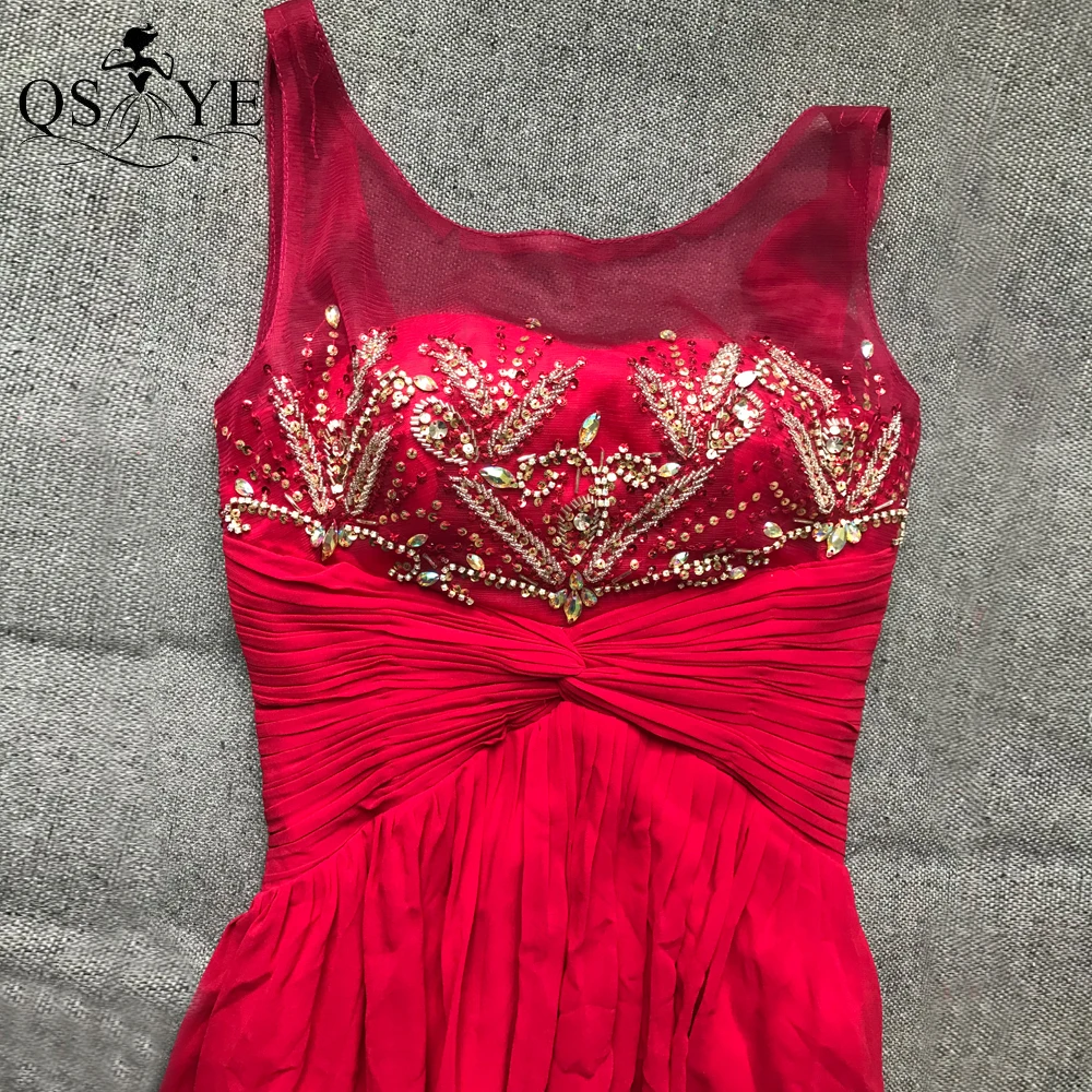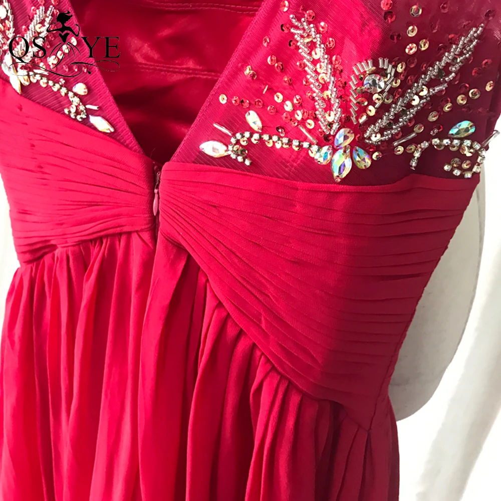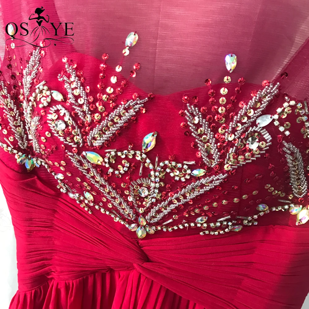 QSYYE Broken Size Red Mother of the Bride Dresses 2020 Chiffon Round Neck Long Evening Dress Beading Ruched Waist Mom Prom Dress