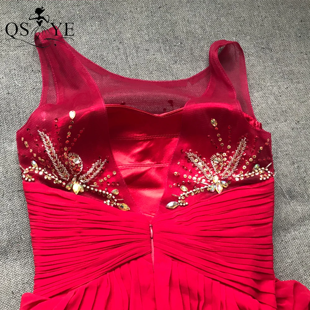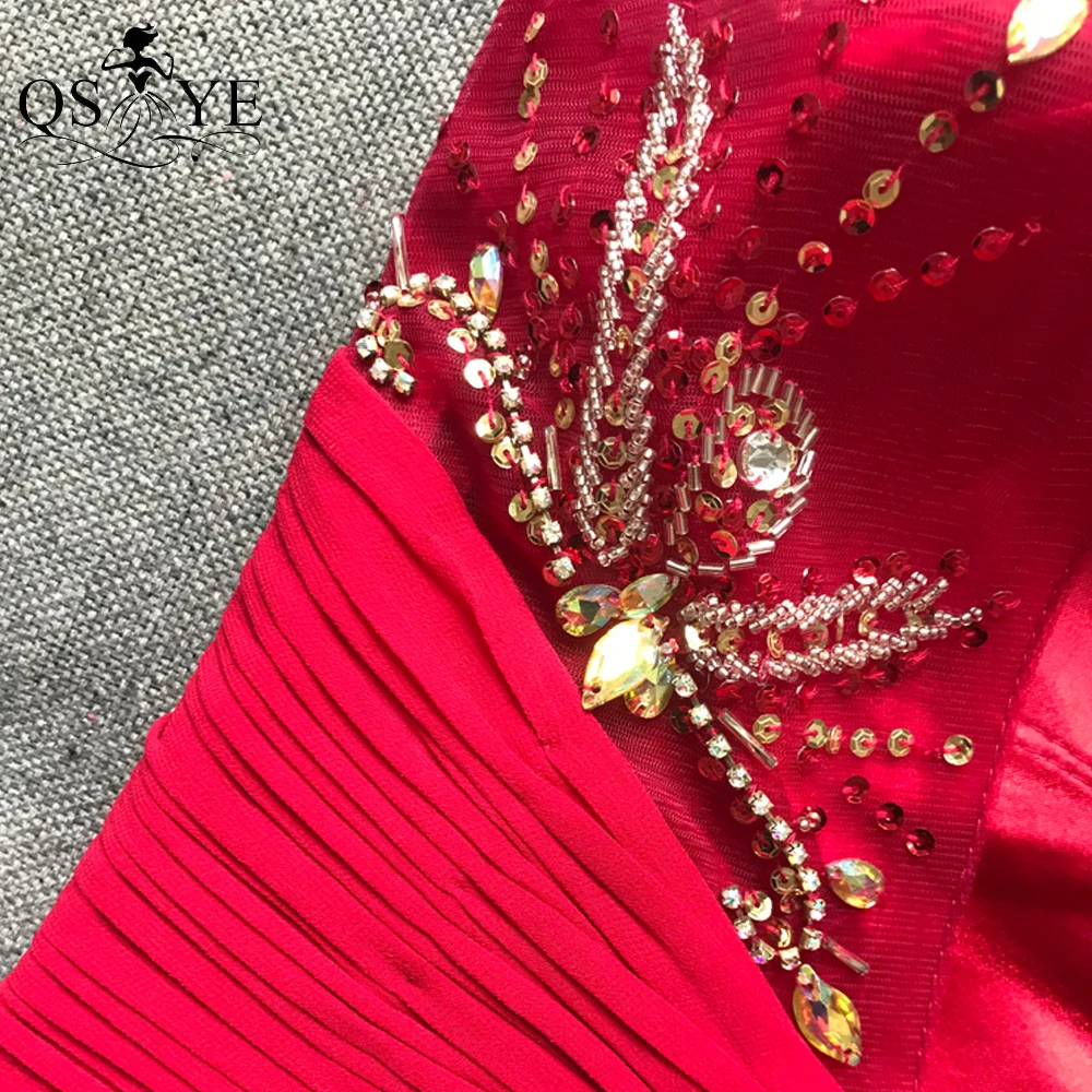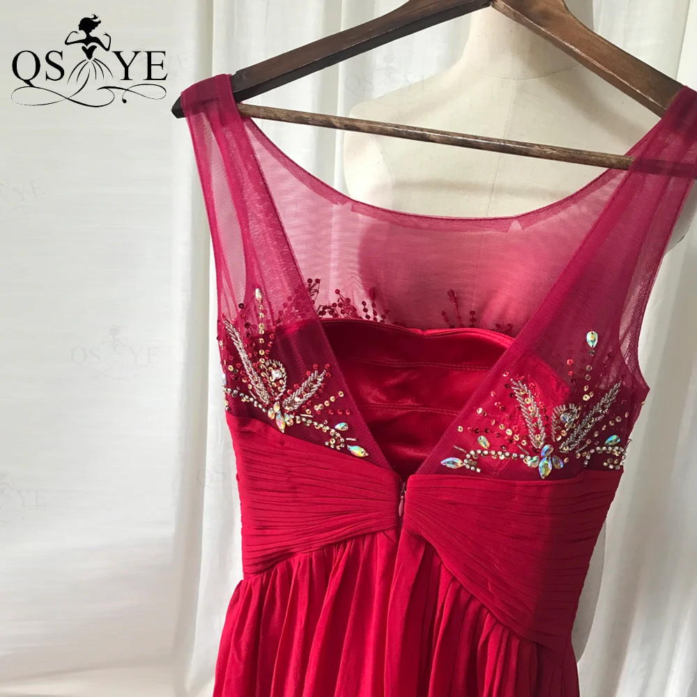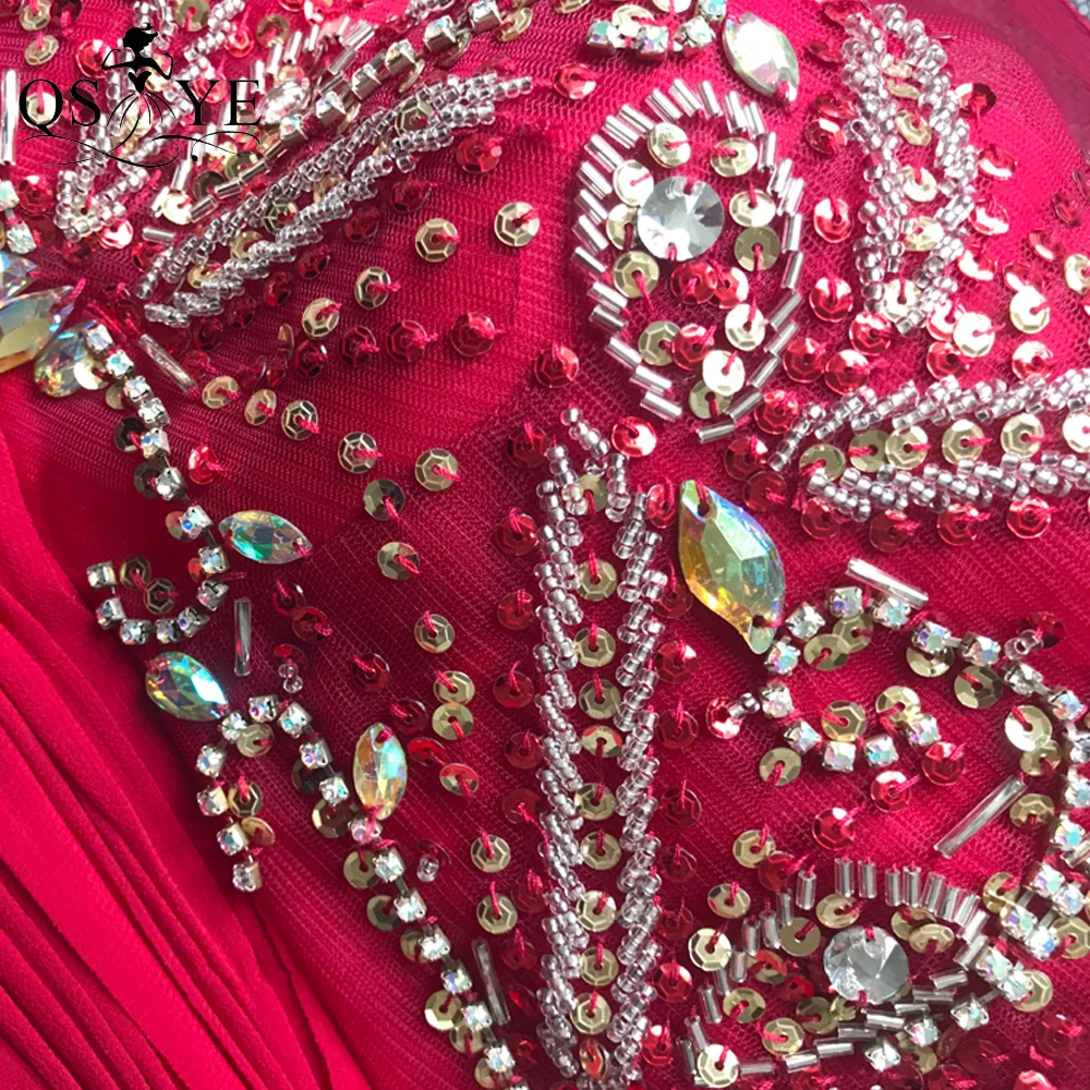 QSYYE Broken Size Red Mother of the Bride Dresses 2020 Chiffon Round Neck Long Evening Dress Beading Ruched Waist Mom Prom Dress