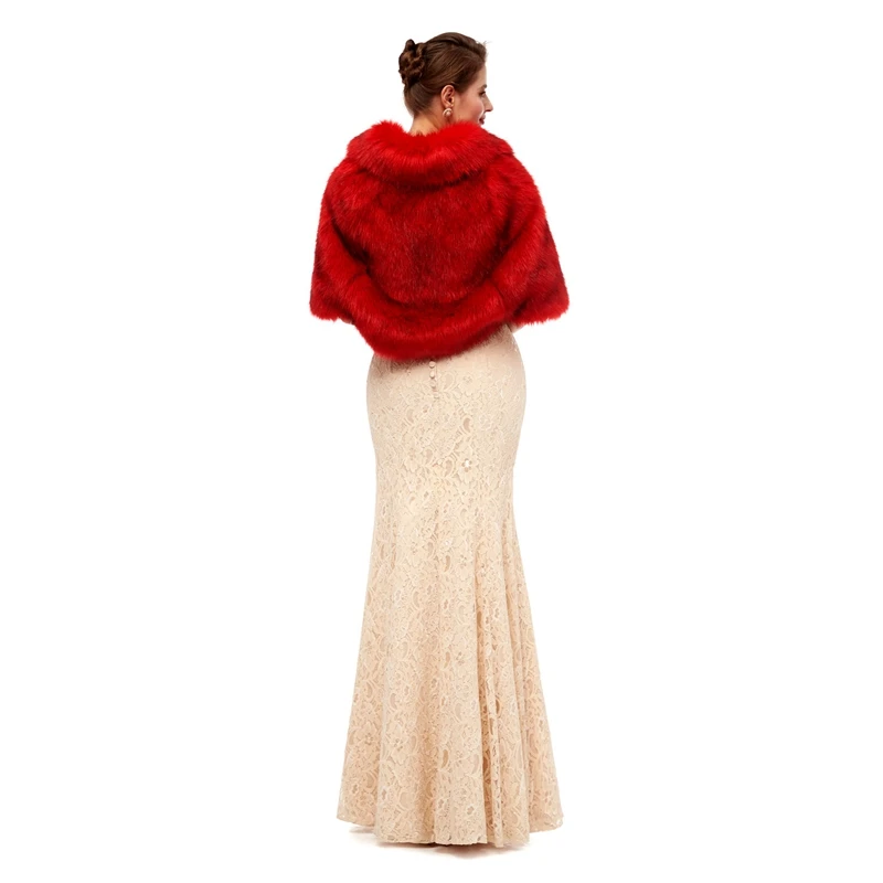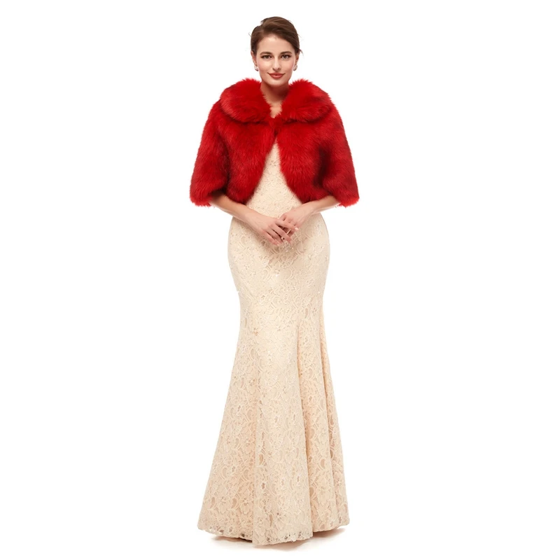 Red Elegant Faux Fur Shawls for Wedding Evening Prom Dress Capes Winter Women Boleros Wraps 100% Real Picture For marriage 2020